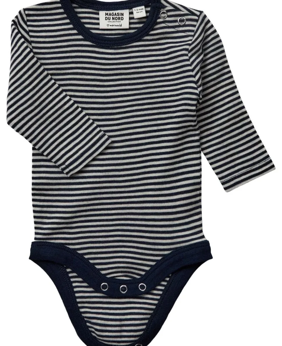 Body fra Magasin du Nord Collection i den blødeste kvalitet af 100% merinould med RWS- og OEKO-TEX® STANDARD 100-certificering. Bodyen har lange ærmer, en rund halsudskæring samt trykknapper i kilen og ved den ene skulder. En skøn body i en lækker kvalitet.