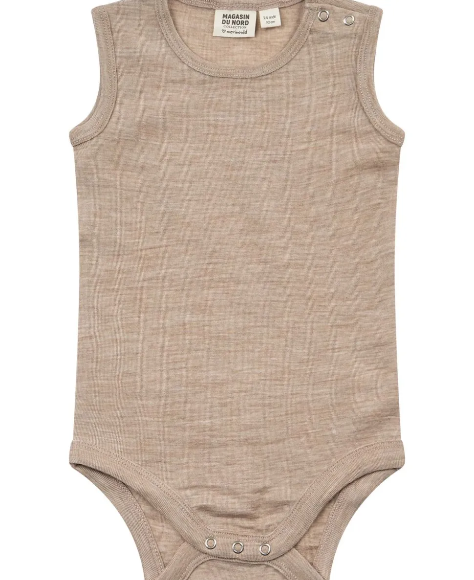 Body fra Magasin du Nord Collection i den blødeste kvalitet af 100% merinould med RWS- og OEKO-TEX® STANDARD 100-certificering. Bodyen har brede skulderstropper, en rund halsudskæring samt trykknapper i kilen og ved den ene skulder. En skøn body i en lækker kvalitet.