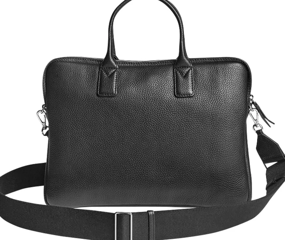 Wrap Laptop Bag fra Markberg er den perfekte arbejdstaske, i det blødeste kalveskind. Tasken har plads til en 14 tommer computer. Tasken har ét stort rum, og en åben lomme ved siden af. Tasken har dertil en stor skjult frontlomme med lynlås. Tasken har 2 små hanke, men der følger en bred crossbody strop med, som både er justerbar og aftagelig. Taskens foer er i 100% bomuld.