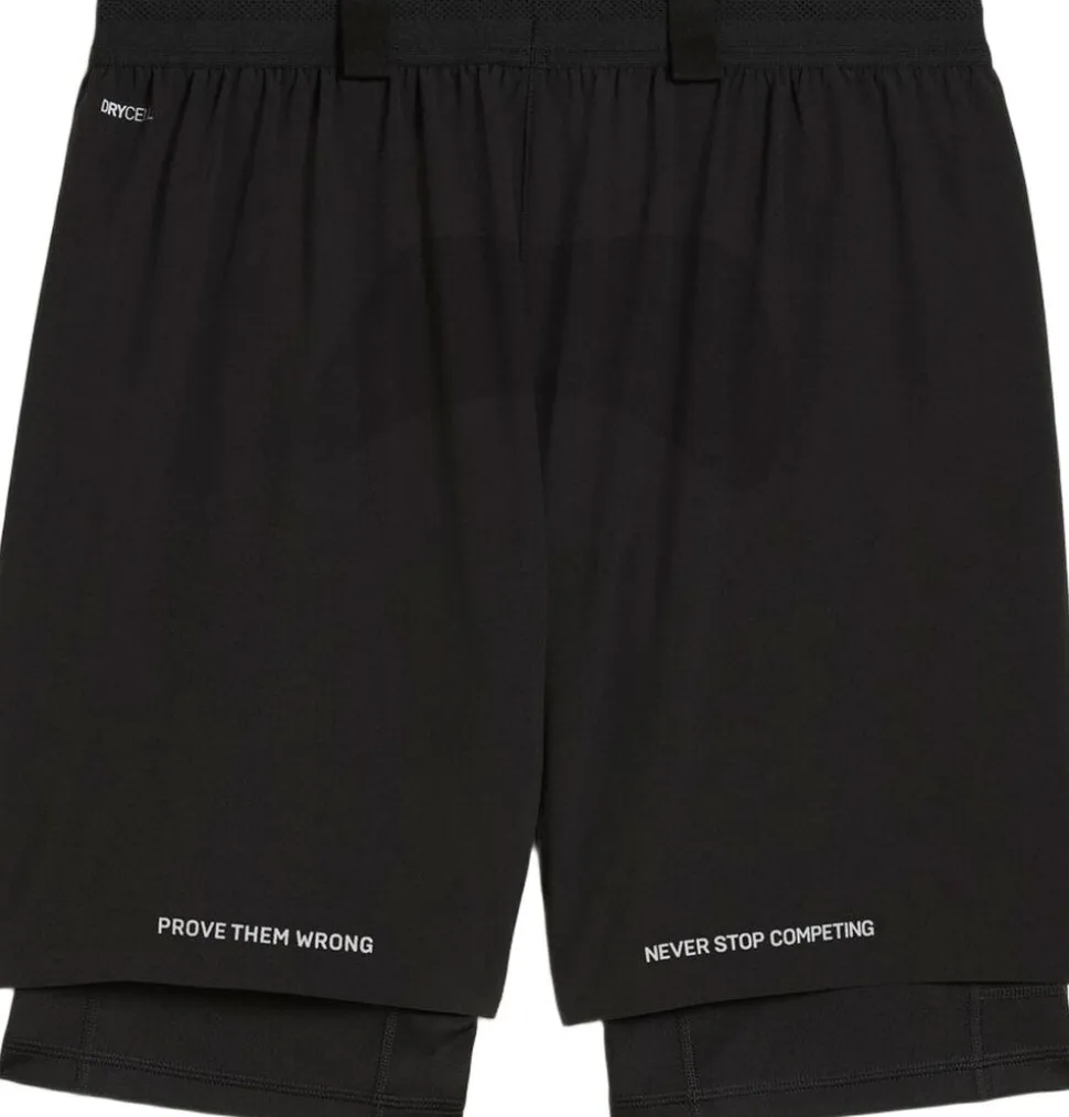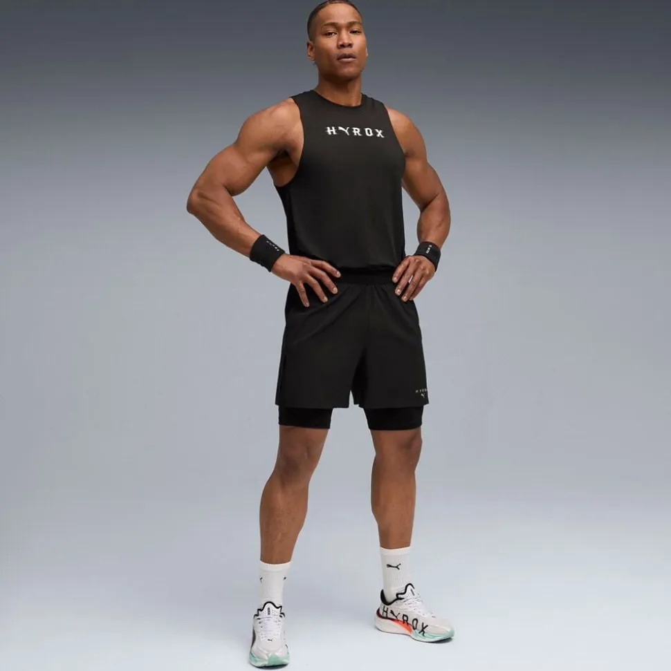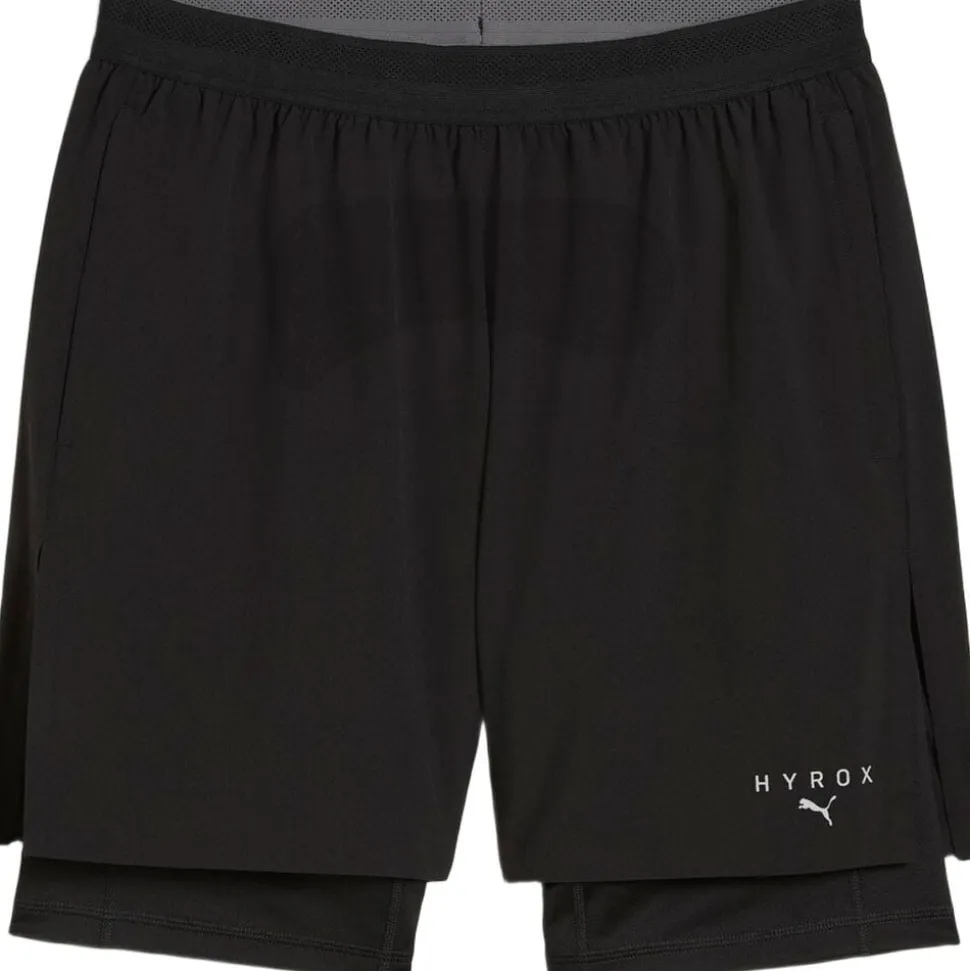 PUMA X HYROX 2 in 1 Shorts kombinerer funktionalitet og stil til det krævende træningsmiljø. Med en integreret kompressionsshort, der sikrer ekstra støtte, og et ydre lag med løs pasform for optimal bevægelsesfrihed, er de ideelle til både fitness og løb. Shortsene er fremstillet i åndbart, fugttransporterende materiale, der holder dig tør under intense øvelser. Den elastiske talje med justerbar snøre sikrer en perfekt pasform, mens praktiske lommer giver plads til småting. Perfekte til at præstere og skille dig ud, uanset om det er til træning eller aktiv livsstil.