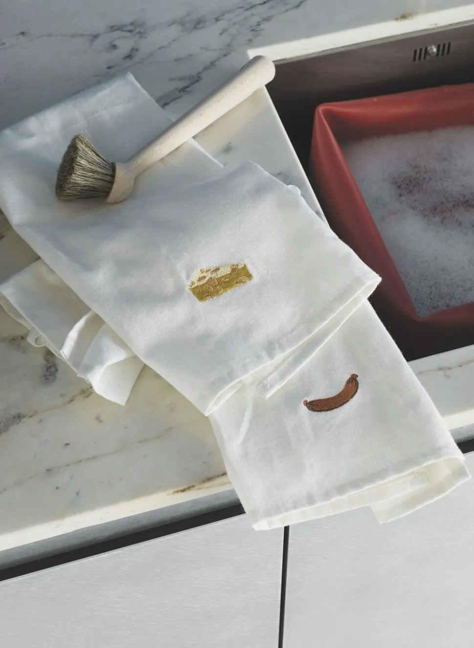 Yummy er en kollektion af praktiske viskestykker dekoreret med firnurlige broderier og lavet af OEKO-TEX certificeret linned og bomuld. Yummy fås i seks forskellige varianter som hver fremstår som et friskt pust til det klassiske køkkentekstil.