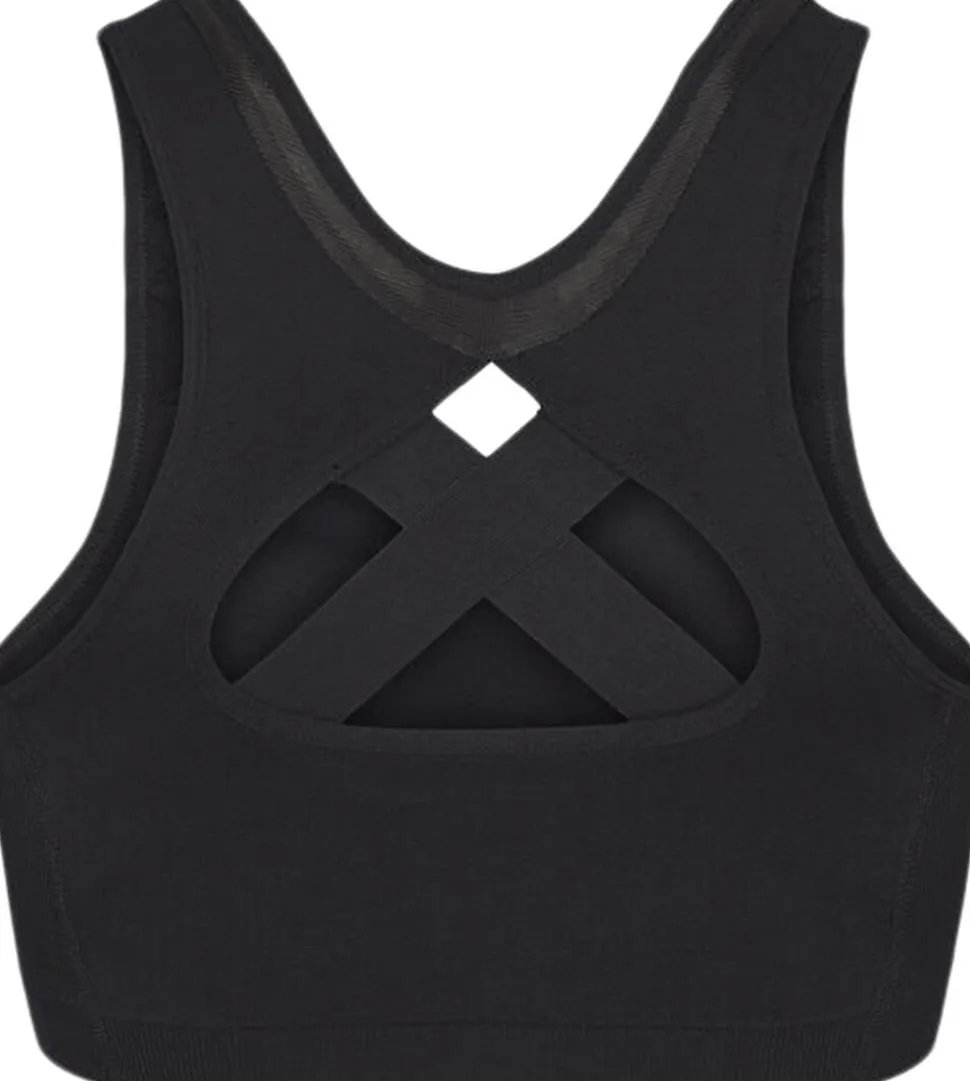 - Bred elastisk kant under brystet for ekstra støtte og stabilitet