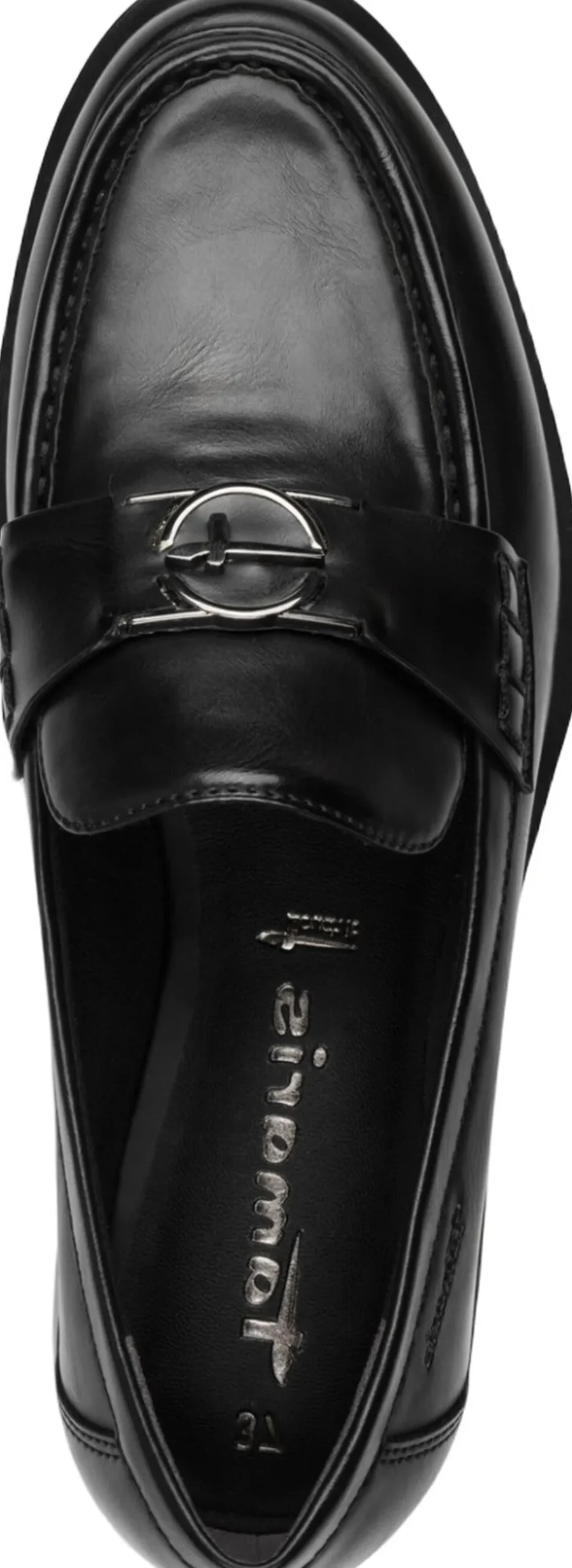 Loafer i polido på en tynd glat sål. Stadig fleksibel. Et gun metal spænde på bæltet over vristen. Touch it effekt i dæksålen