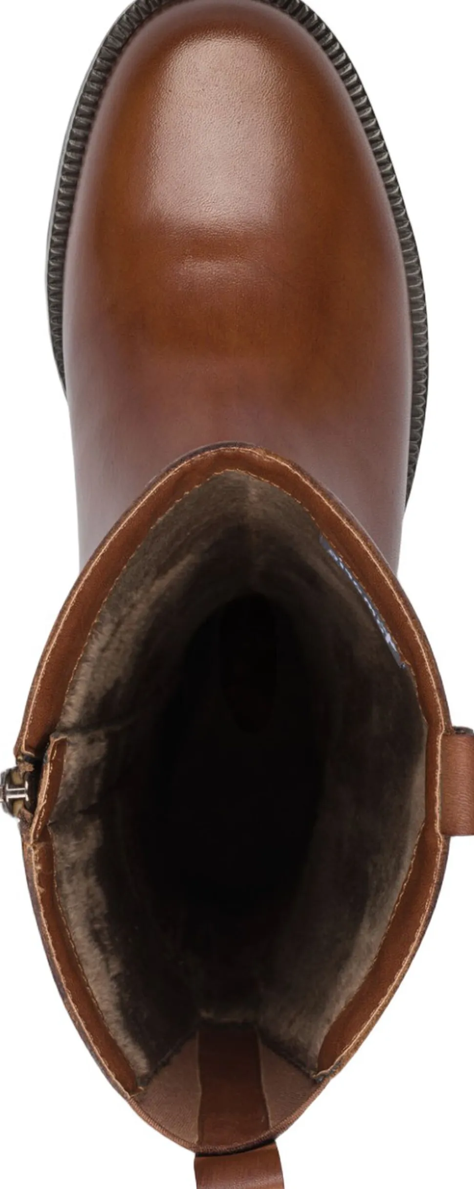 Langskaftet ridestøvle i cognac skind. Hælen har antislide. Skafthøjden er 36 cm og hælhøjden 30 mm