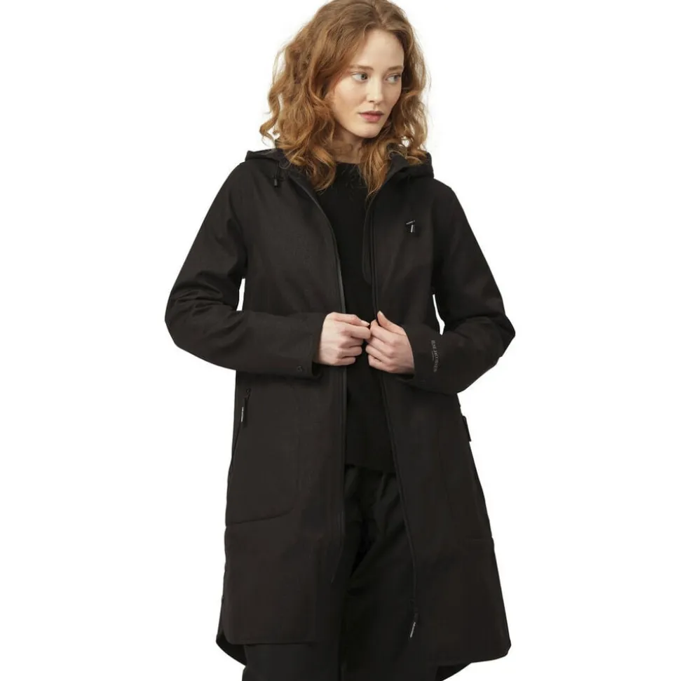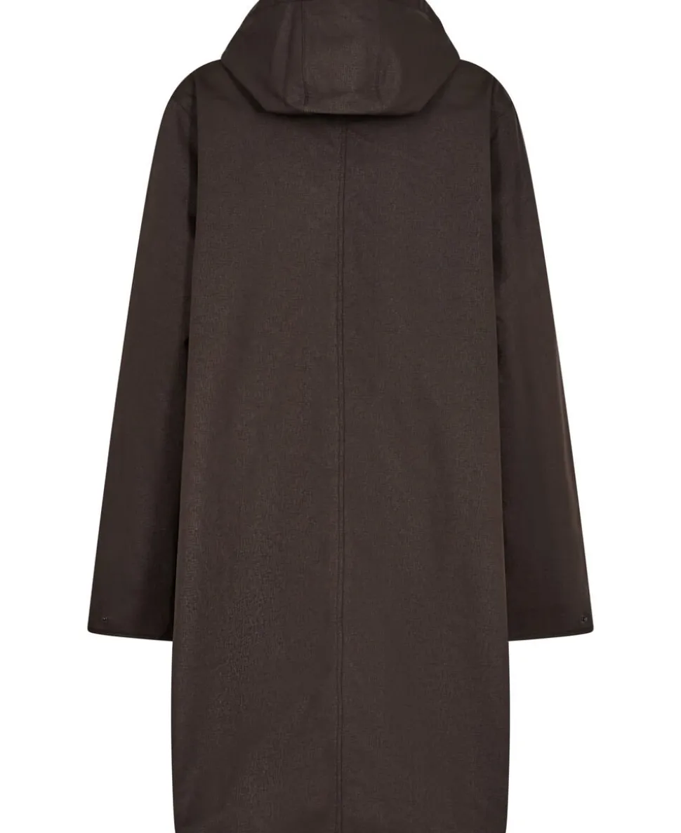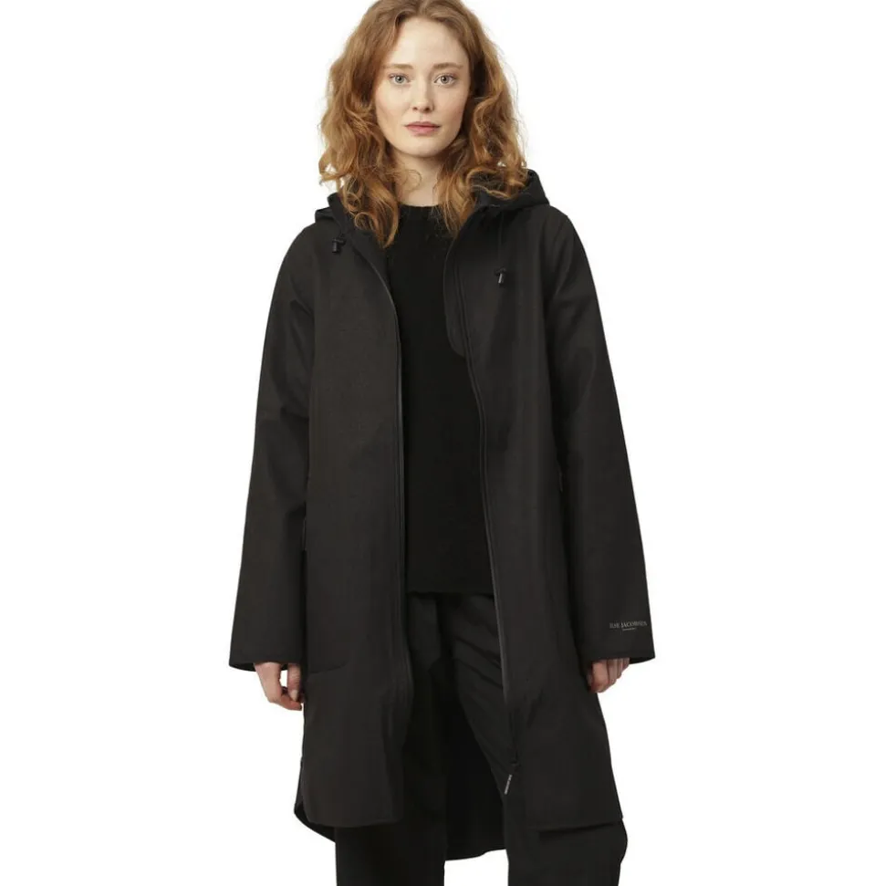En feminin og funktionel regnfrakke fås i en flatterende og behagelig A-formet silhuet. Stilen er lavet af åndbart softshell-materiale, og Krop er lige under knæet. Stilen har en aftagelig hætte, slidser i sidesømmene med trykknapper, knaplukning ved armen, Ilse Jacobsen Hornbæk reflekterende logo på venstre ærme og en YKK 2-vejs Aqua Guard-lynlås langs fronten og ved lommerne. Dette funktionelle materiale modstår vandtryk op til 5000 mm. Oven på stoffet har vi tilføjet en vandafvisende Ecorepel-belægning for at sikre dit tøj en lang levetid. Alle sømme er tapede