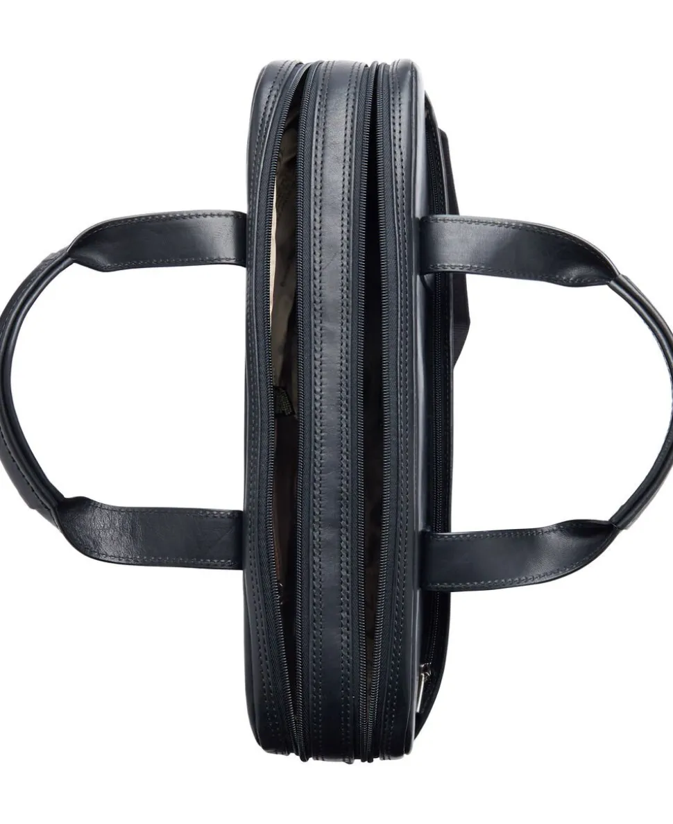 En smart detalje er den særlige anordning til nem montering på en trolleys trækhåndtag, placeret i lynlåslommen på bagsiden af tasken. Fremstillet af autentisk italiensk læder, der er både stilfuldt og miljøvenligt, reflekterer denne taske Tony Perottis engagement i kvalitet og bæredygtighed. Den perfekte løsning for den moderne professionelle, der værdsætter funktionalitet og stil i hverdagen.