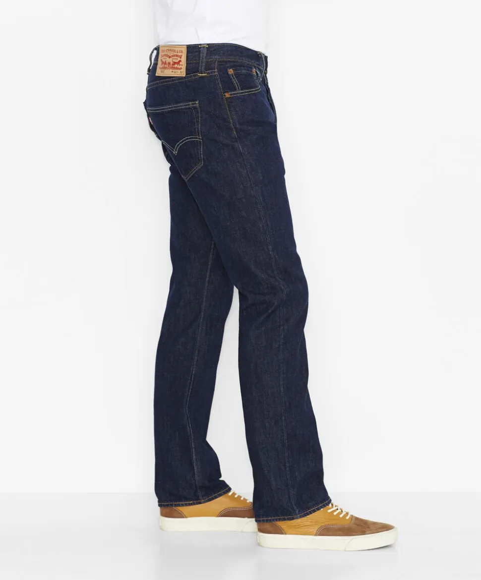 Ikonet inden for jeans må være denne klassiske 501 model fra Levis, som var Levis første jeans modeller. 501 er skåret lige ved hoften og snævrer en smule ind ved benene. Klassisk signatur lukning og bæltetrenser. 5 lommer og levismærkat ved højre lomme.