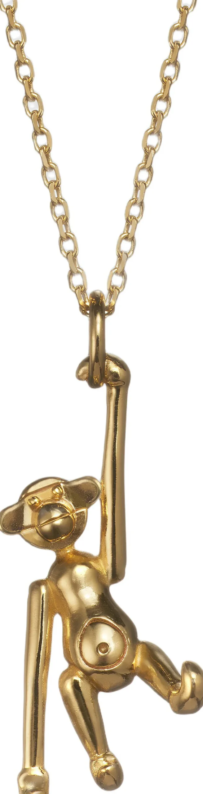 Abevedhænget er fremstillet i 925 sterling sølv og forgyldt med 18K guld. Hvert vedhæng er skabt med omhu og under strenge kvalitetskrav for at sikre både holdbarhed og en perfekt udførelse. Designet er tro mod Kay Bojesens ikoniske abe, hvilket gør smykket til en tidløs klassiker i eksklusive materialer.