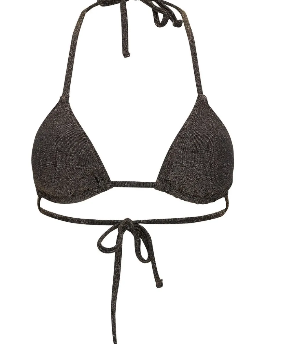 Bikinioverdel fra Magasin du Nord Collection i den smukkeste glimmerkvalitet af 50% genanvendte fibre. Overdelen er enkel i modellen med smalle elastikkanter, trekantede skåle med udtagelige indlæg samt smalle bindebånd. En detalje, der giver en flot effekt.