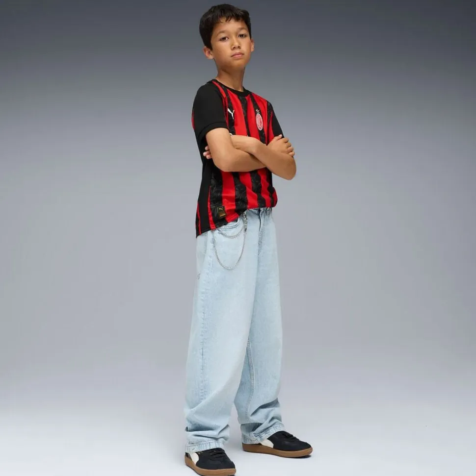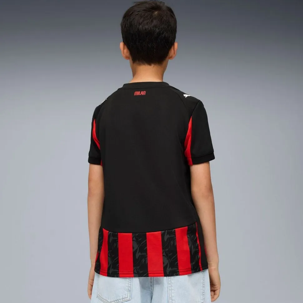 AC Milan 25/26 Hjemmebanetrøje fra Puma kombinerer ikoniske røde og sorte farver med et moderne, flammende design inspireret af klubbens grundlægger Herbert Kilpins vision om et “hold af djævle”. Trøjen er fremstillet i let og fleksibelt materiale med PUMAs dryCELL-teknologi, der effektivt transporterer sved væk og sikrer optimal åndbarhed via mesh-paneler. Med en regular fit og holdets emblem i en markant monokrom udgave over hjertet, udstråler denne trøje både stolthed og kampgejst. Perfekt til både kampdag og træning vis din støtte til Rossoneri med stil og komfort.