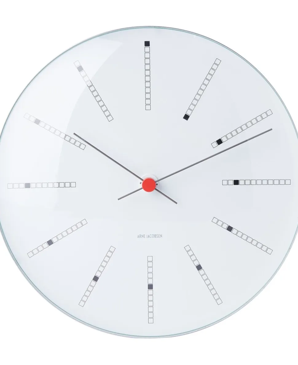 Bankers væguret blev designet til Danmarks Nationalbank og hænger blandt andet forhallen, der går som en katedral næsten 20 meter op gennem alle bygningens seks etager. Uret findes også to mindre størrelser på 16 og 21 cm. Arne Jacobsen er kendt for sin kompromisløse tilgang til arkitektur og design. Med fokus på helheden designede han designede også møbler, tekstiler, lamper og andet interiør til sine bygninger. Jacobsens ure står som smukke eksempler på denne helhedsorienterede tilgang til en opgave.