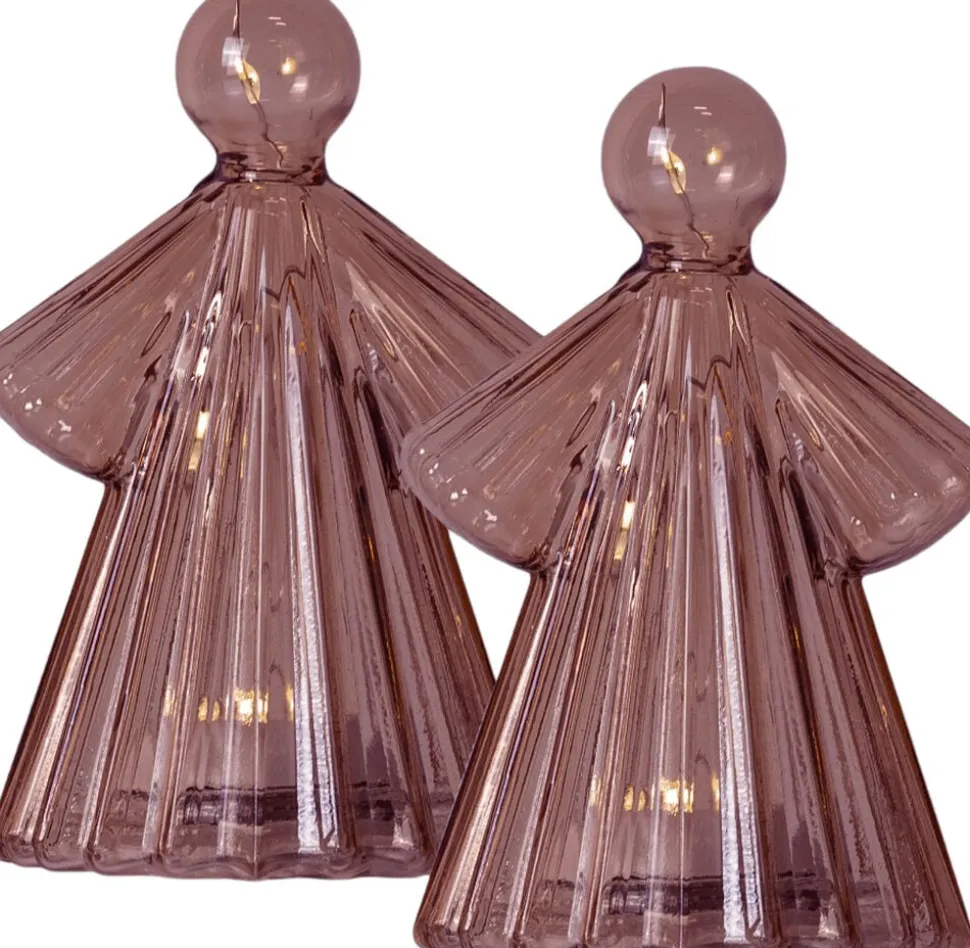 Elegant dekorations engel i mundblæst glas, LED lysene reflekter fint i det buet glas. Alberte serien kan fint mikses i forskellige størrelser og farver.