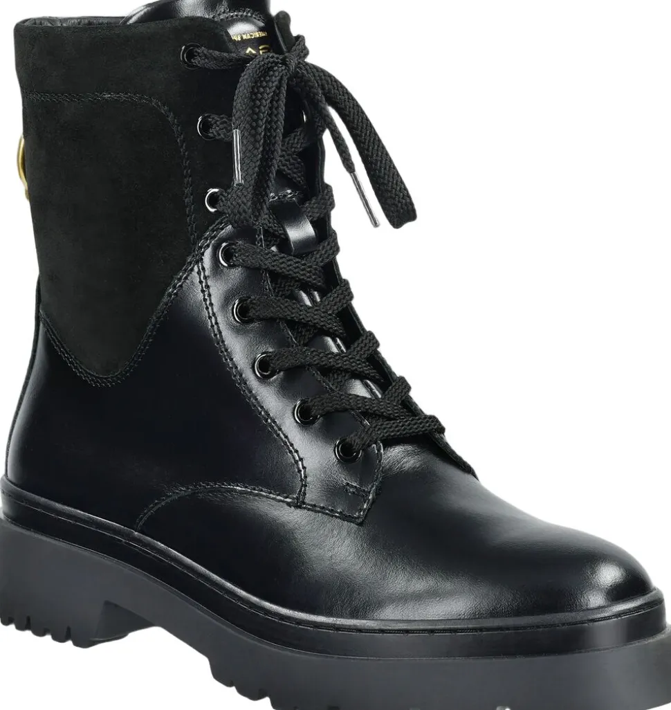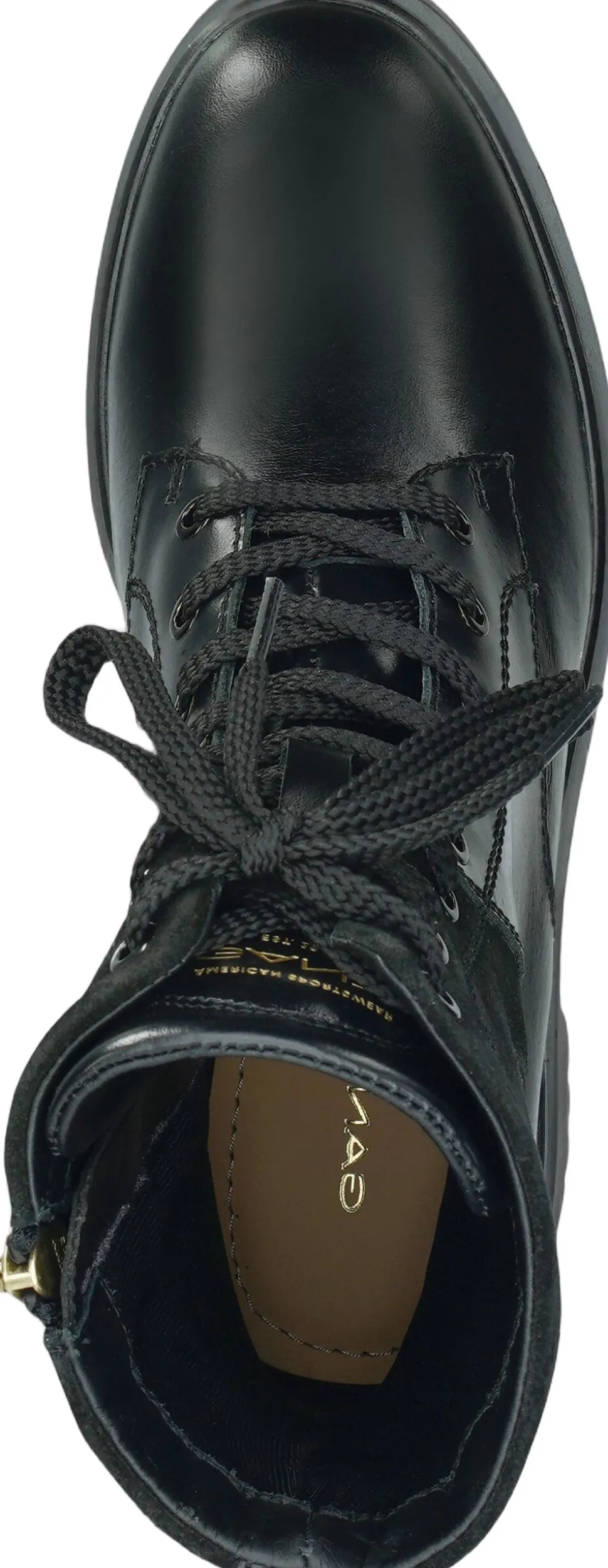 High Fashion Chelsea-støvle med en superlet, profileret gummisål, smalt skaft og snørebånd. Det øverste materiale er læder af høj kvalitet med synlige dekorative syninger