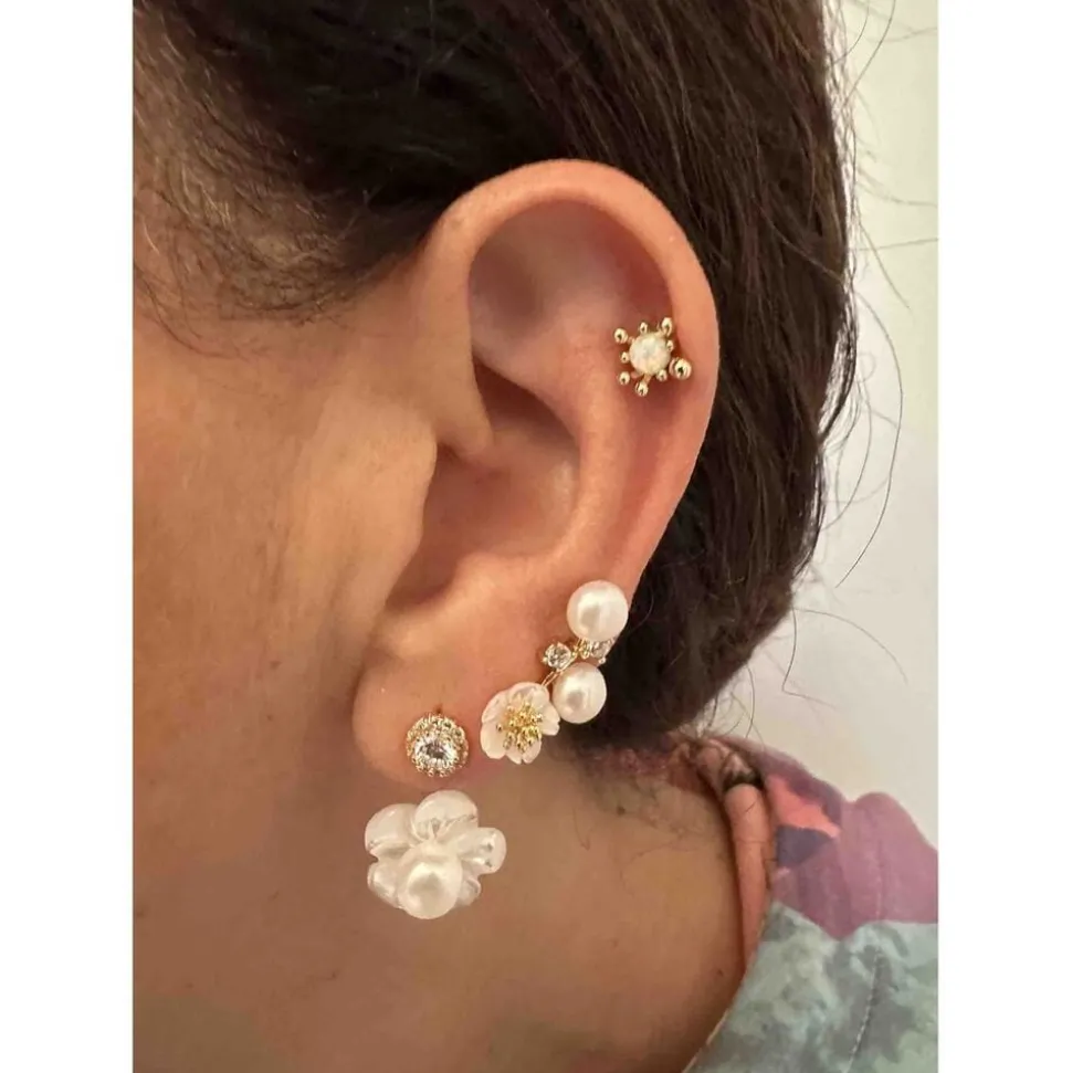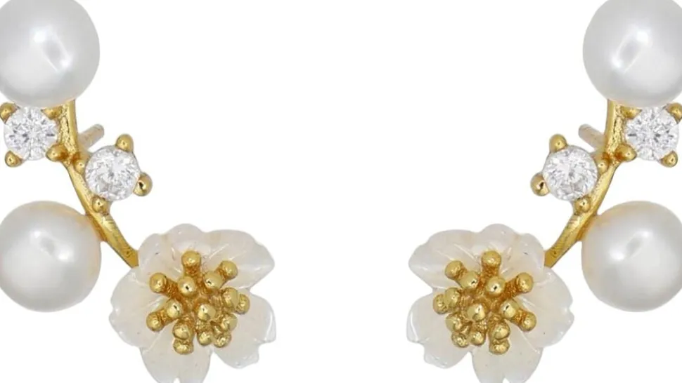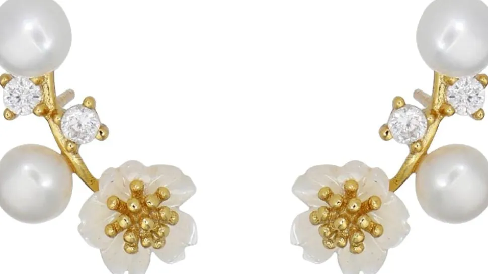 Øreringe i 24k Gold Plated Recycled Sterling Silver 925 & Zirkonia & Fresh water perle, skalperler. Prisen er for 1 par.
