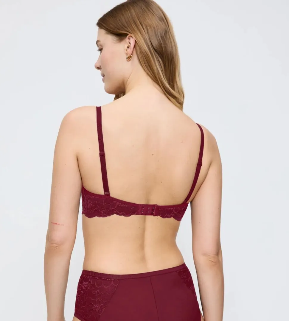 Smuk moulded bh med flad blonde der er usynlig under tøjet. Ingen syninger henover barmen og smuk blonde på rygstykket. Op til H cup