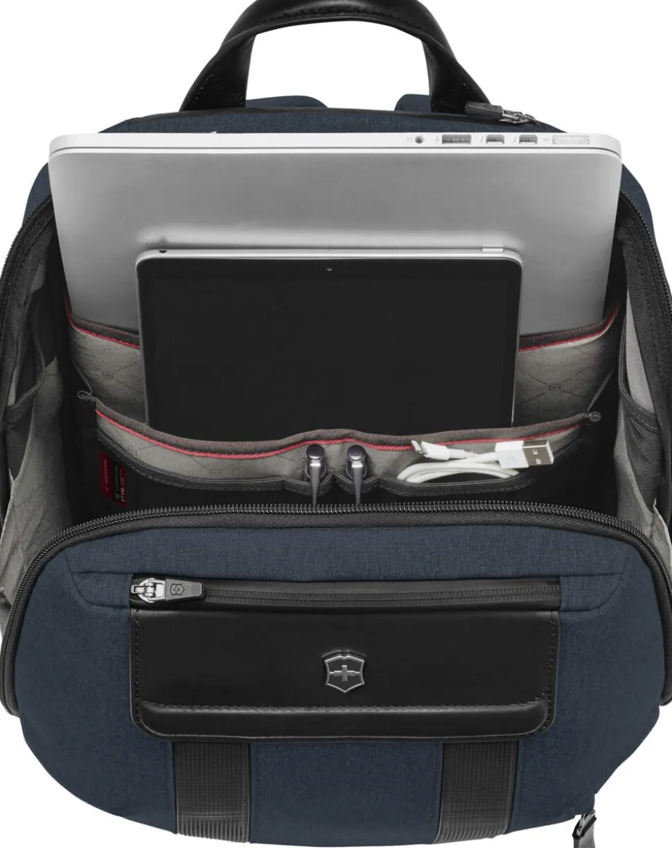 Smart og rummelig rygsæk med fremragende organisering af dine ejendele. Indeni tasken finder du lommer til computer, tablet, telefon, kuglepenne og mere. På siden af tasken er der en lomme til vandflaske. På bagsiden er der en strop til montering af tasken på en kuffert.