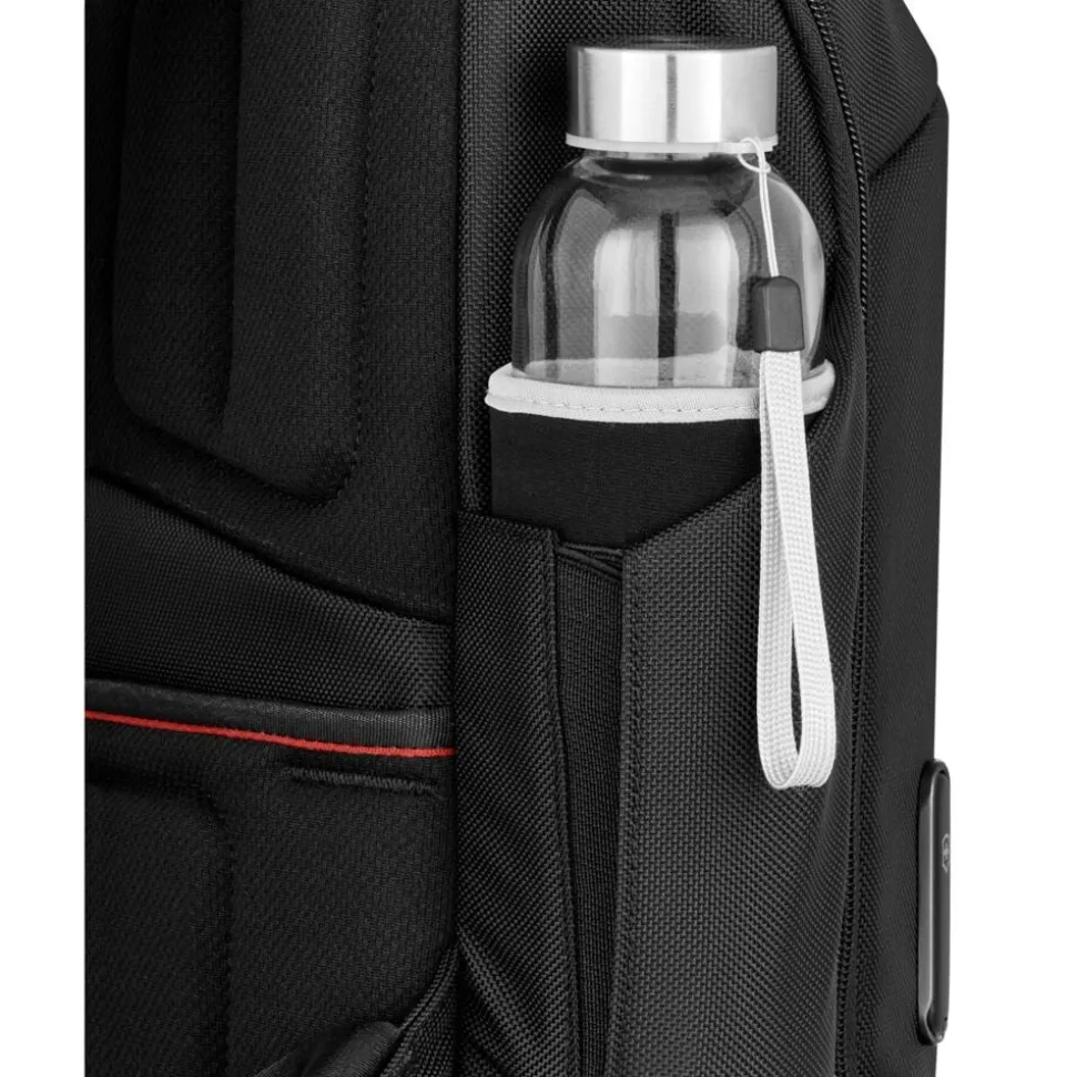 En funktionel og robust rygsæk designet til daglig brug og rejse. Tasken er udstyret med praktiske elastiske sidelommer, der giver sikker opbevaring af vandflasker eller andre genstande med variabel størrelse. På undersiden er der integrerede bundfødder, som reducerer direkte kontakt med snavsede eller fugtige overflader og dermed forlænger materialets levetid. Derudover har rygsækken en dedikeret pass-through-lomme, som gør det muligt at fastgøre tasken stabilt oven på en kufferts teleskophåndtag, hvilket sikrer nem og ergonomisk manøvrering under transport.