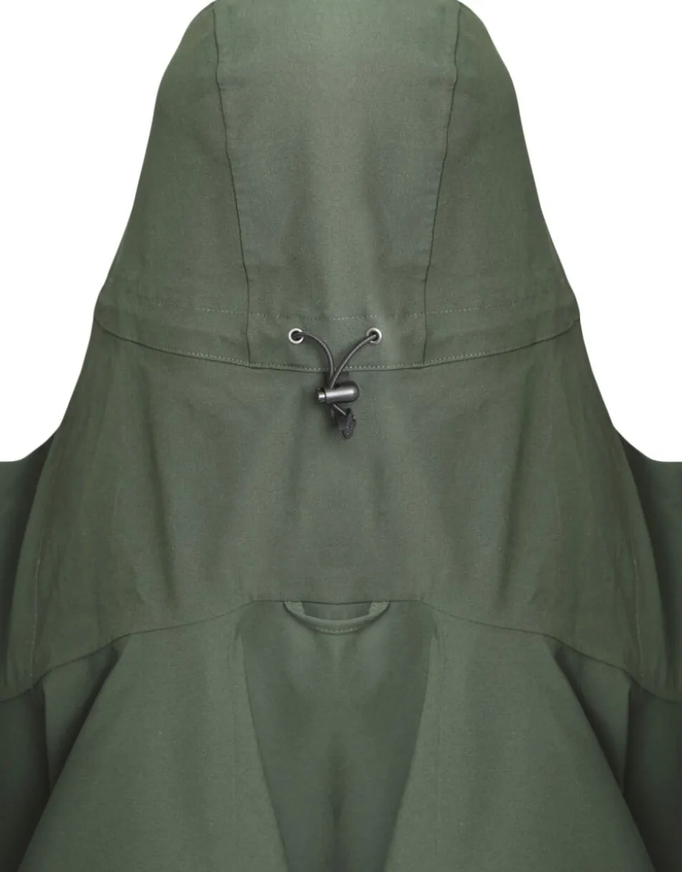 Hætten er faconsyet rummelig og kan justeres så du kan dreje hovedet uden at miste udsynet. Den er også forsynet med en lille afstivet skygge så du ikke får vand i øjnene hvilket er er ekstra praktisk detalje hvis du bruger briller!