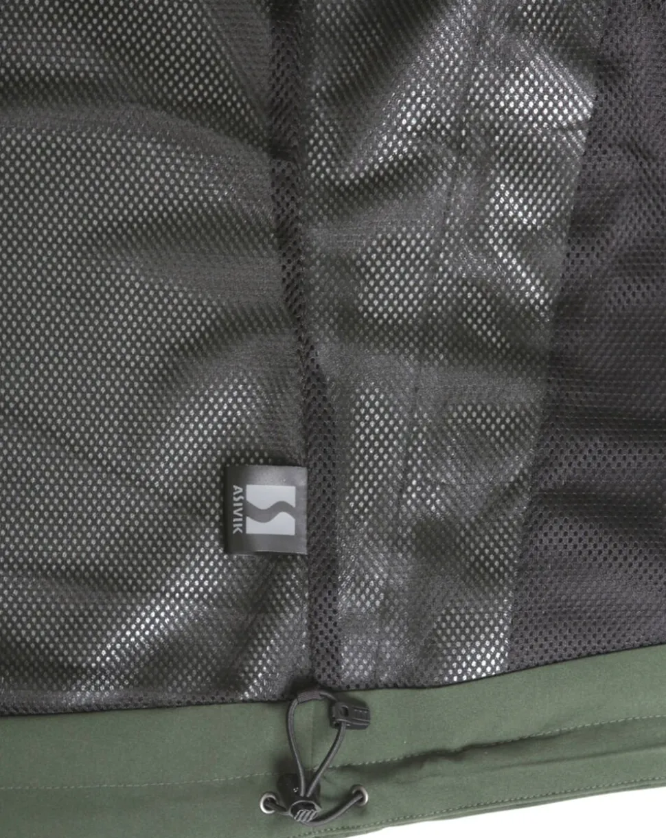 Asivik Rain er fremstillet i genanvendt polyester og forsynet med Ureamax membran der gør den helt regntæt samtidig med at membranen tillader jakken at ånde. Den er indvendig forsynet med åndenet i polyester. Dog er der i ærmerne et glat nylon for der gør det markant nemmere at stikke i jakken uden at trøjeærmer eller andet hænger fast og trækkes op.