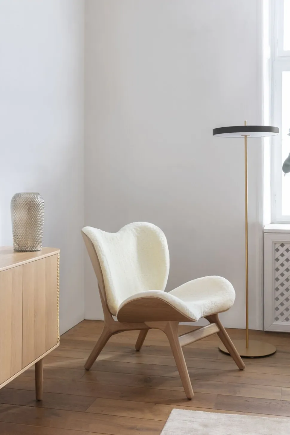 Asteria Gulvlampe er skapt i skjæringspunktet mellom design, teknologi og håndverk. Den har innebygd LED-teknologi og en form som er så minimalistisk at den aldri vil gå av moten. LED-panelet er dimbart og har en hvit skjerm som sørger for en myk belysning i rommet rundt.