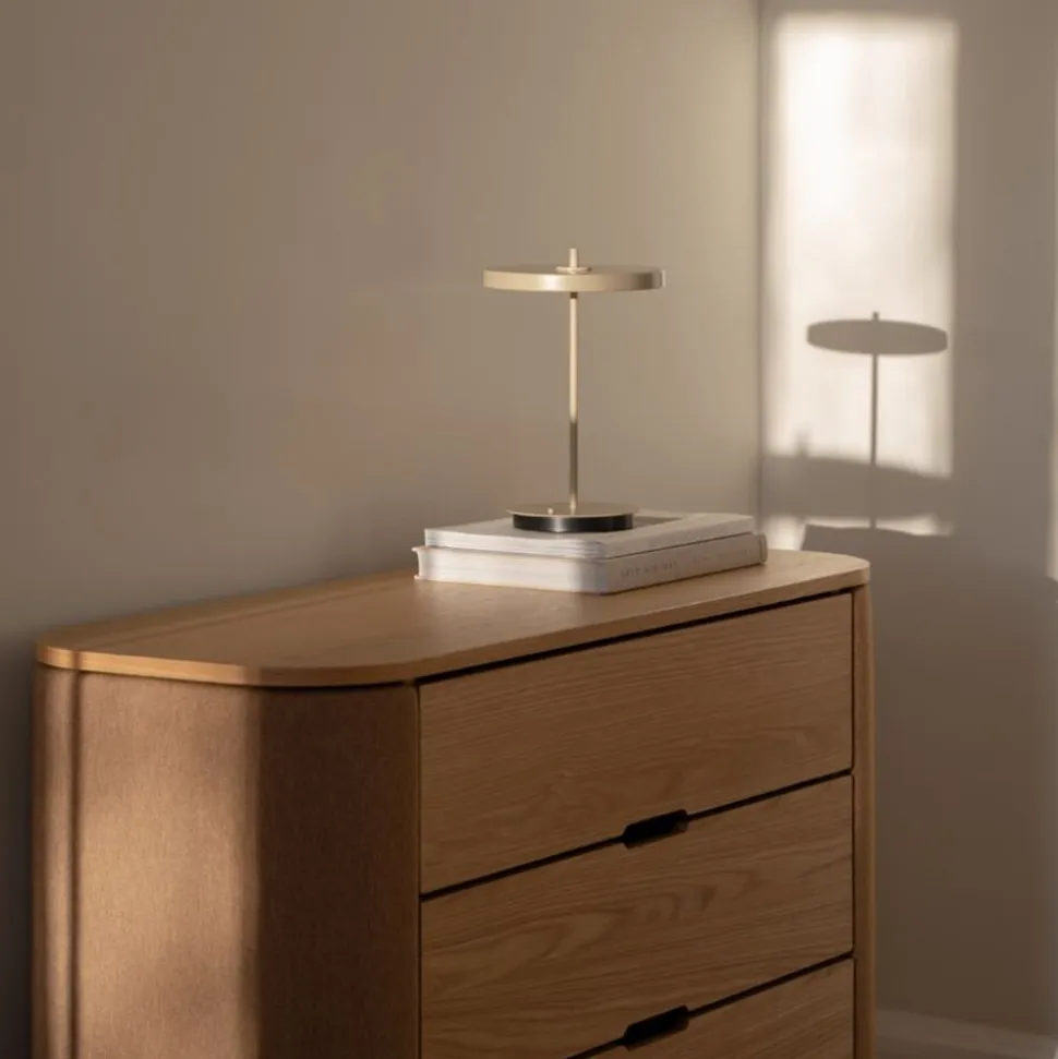 Asteria Move-lampen kombinerer et bærbart, ledningsfrit Design med problemfri funktionalitet og underspillet raffinement. Dens indbyggede LED-panel og diffuser udsender blødt, omgivende lys, mens fire justerbare belysningsniveauer giver dig mulighed for at skabe den ideelle atmosfære til enhver lejlighed – uanset om du er til fokuseret arbejde eller en afslappet aften. Asteria Move er perfekt til en hyggelig middag eller til at give det perfekte lys i en moderne stue og komplementerer enhver indretning med sit tidløse Design og alsidighed, der bringer ubesværet luksus til hvert hjørne af hjemmet. Med sin mobilitet sikrer Asteria Move, at belysningen altid er der, hvor du har brug for den – ved sengekanten, på køkkenbordet eller i stuen – hvilket sikrer den perfekte atmosfære i ethvert rum. Asteria Move fås i en bred vifte af farver og tilbyder et udvalg til alle stilarter og omgivelser, hvilket gør den til en alsidig tilføjelse til ethvert hjem.