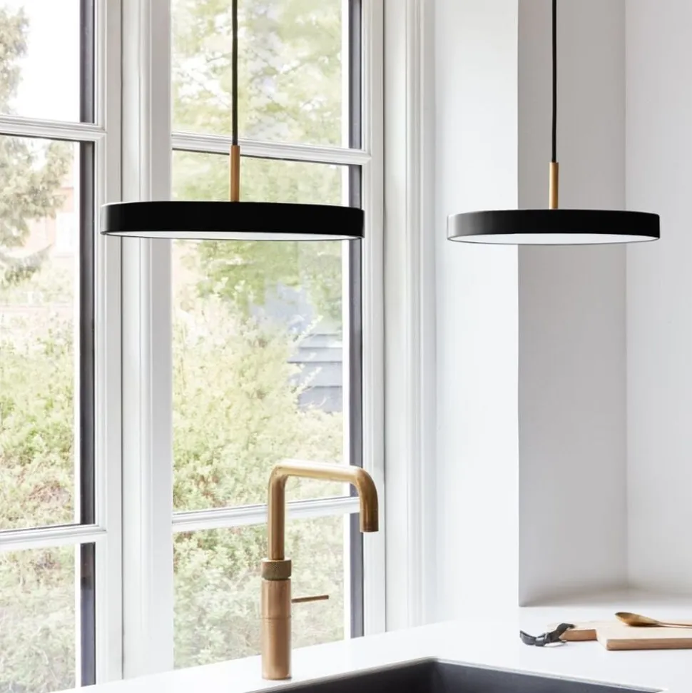 Asteria Plus tager det klassiske Asteria-vedhæng til nye højder ved at tilbyde justerbar lystemperatur, der gør det muligt at tilpasse lyset til den specifikke indstilling. Asteria Plus pendlen er kompatibel med skinnebelysning og kan dæmpes via en ekstern lysdæmper, hvilket gør den perfekt til kontoret, private spisestuemiljøer eller køkkenområder. Den kombinerer funktionalitet og alsidighed og imødekommer behovene i områder, hvor tilpasningsevne og stil er af største vigtighed. Asteria Plus pendlens slanke udseende og rene linjer repræsenterer minimalistisk skønhed, mens et indbygget LED-panel tilfører rummet blød og tidløs belysning. Med en skjult knap i lampens top kan du nemt justere lystemperaturen og skabe den perfekte atmosfære, uanset om det er til fokuseret arbejde eller en afslappet atmosfære. Lampen kan dæmpes ved brug af en ekstern lysdæmper. Asteria Plus fås i en række forskellige farver i medium og mini og har en messingplade, der nemt kan udskiftes med stål eller sort, hvilket giver uendelige Designmuligheder, der passer til din personlige stil.