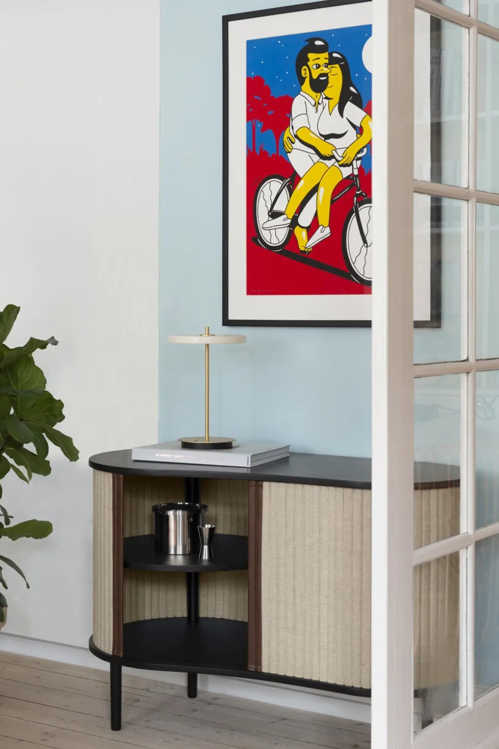 Asteria Move er en flytbar lampe helt uden ledninger, som giver et ekstra fokus til designets detaljer og gør den nem at have med sig, når man bevæger sig rundt i hjemmet. Lampen har et indbygget LED-panel med en hvid diffusor, der sikrer en behagelig belysning i rummet. Asteria Move har tre lysintensiteter der kan justeres via knappen på lampens base. Batteriets holder helt op til 35 timer og den kan nemt oplades ved at placere den oven på en hvilken som helst Qi-opladningsenhed som Unifier fra UMAGEs belysningstilbehør eller med det medfølgende USB-kabel