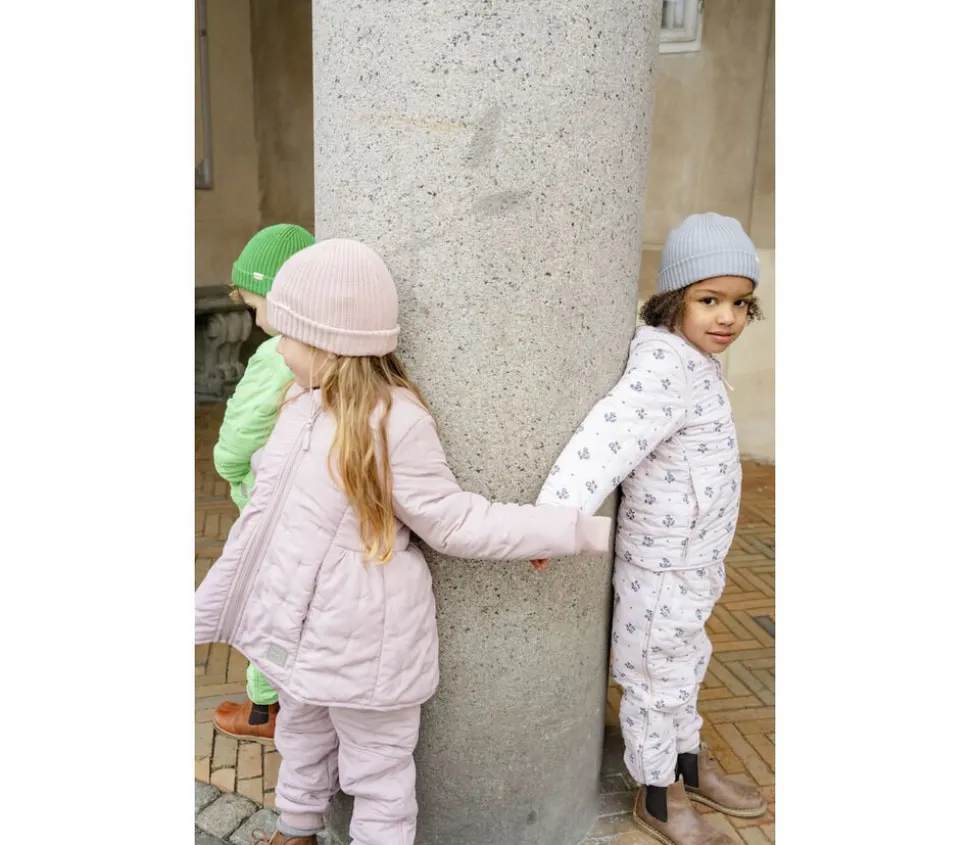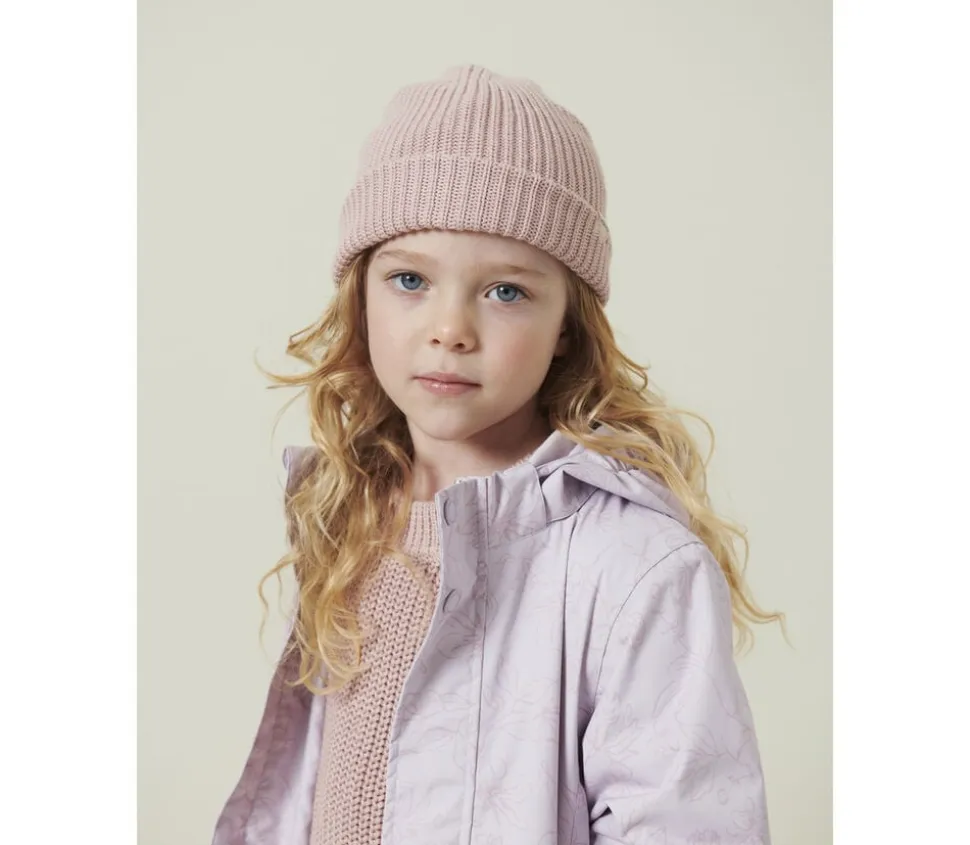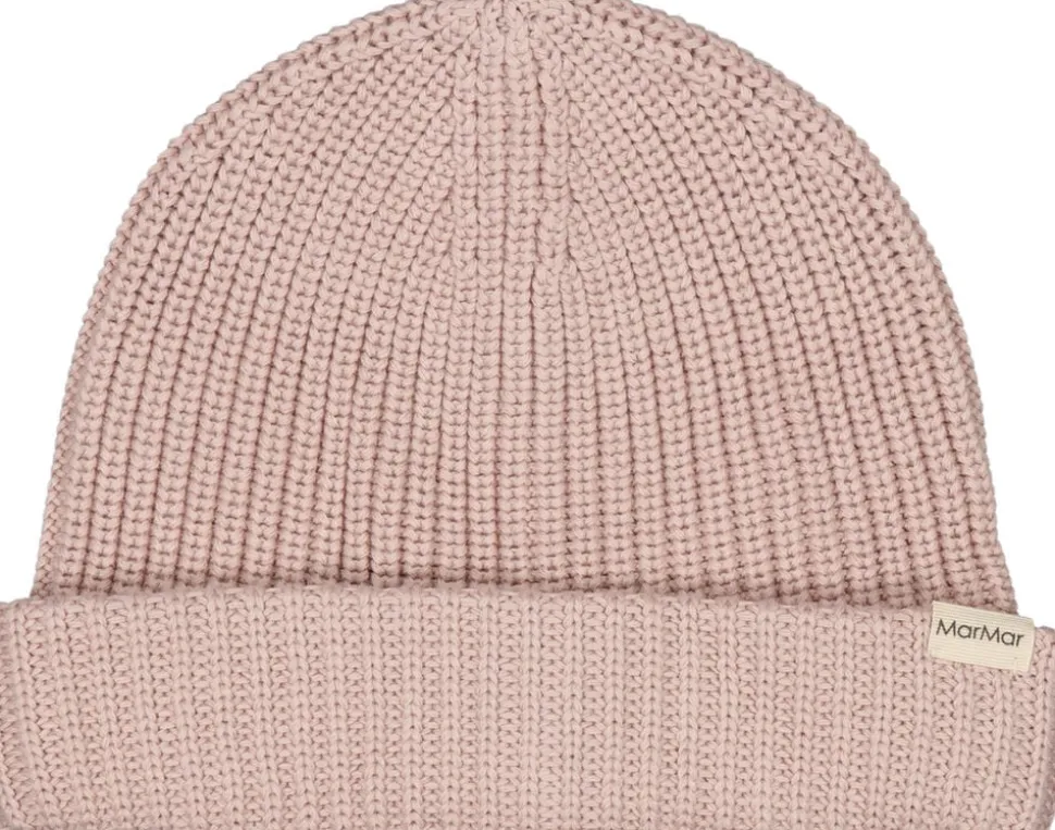 Klassisk beanie med bredt ombuk i kanten der både kan bruges med et eller to ombuk
