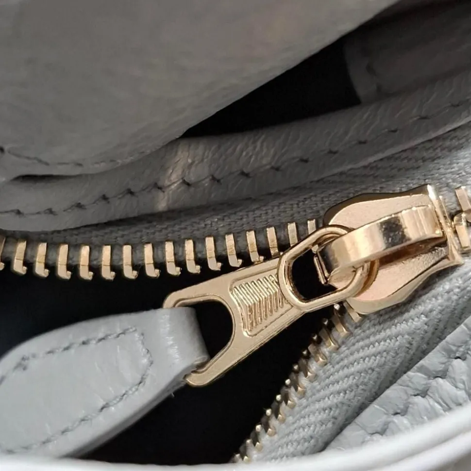 Elevate your everyday with Balenciaga’s iconic Part Time Tote — a perfect balance of edgy sophistication and timeless function. Crafted in supple grey leather with rich gold-tone hardware, this tote features signature rolled handles, whipstitch trim, and protective base feet for all-day durability. A detachable shoulder strap offers versatile wear, while the canvas-lined interior with a zip pocket keeps essentials organized.