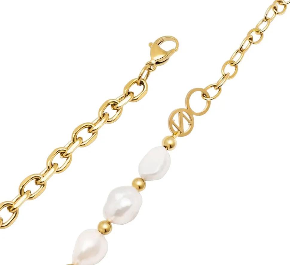 Kvinders barok Love Choker med 7 mm Cultured Baroque White Freshwater Pearls. Vi bruger kulturperler fra østers og ferskvandsmuslinger, som vi håndplukker til alle vores smykker, 6 mm runde kabelkæde, rustfrit stål af rustfrit stål med guldplade. Håndlavet i Los Angeles