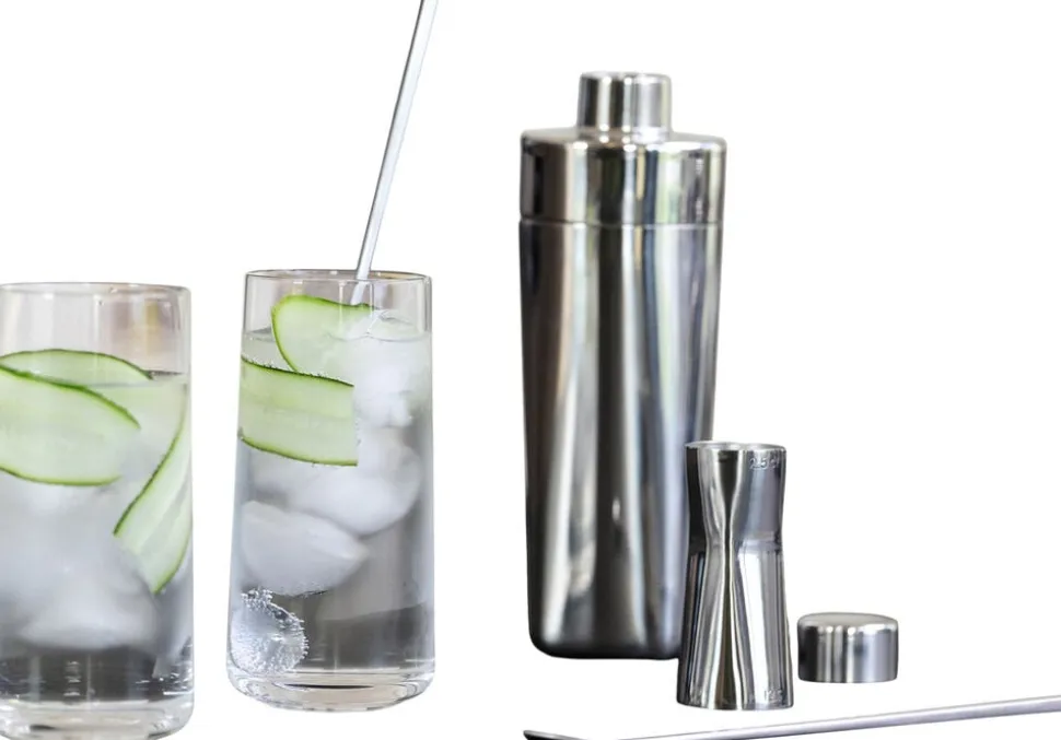 Barsættet består af Rocks shaker 400 ml, målebæger 2,5/5 cl og cocktailske i rustfrit stål. Shaker designet af Mavro//Lefèvre med inspiration fra en smeltende isternings på en gang skarpe og bløde former. Shakeren er udført i spejlblankt, rustfrist stål og har indbygget filter under låget. H 23,2 cm. 0,4 l. Mix perfekte drinks med dette dobbelte målebæger, der matcher Rocks’ bargear, designet af den danske designduo Mavro//Lefèvre. Målebægeret er fremstillet i rustfrit stål og kan afmåle hhv. 2,5 og 5 cl.