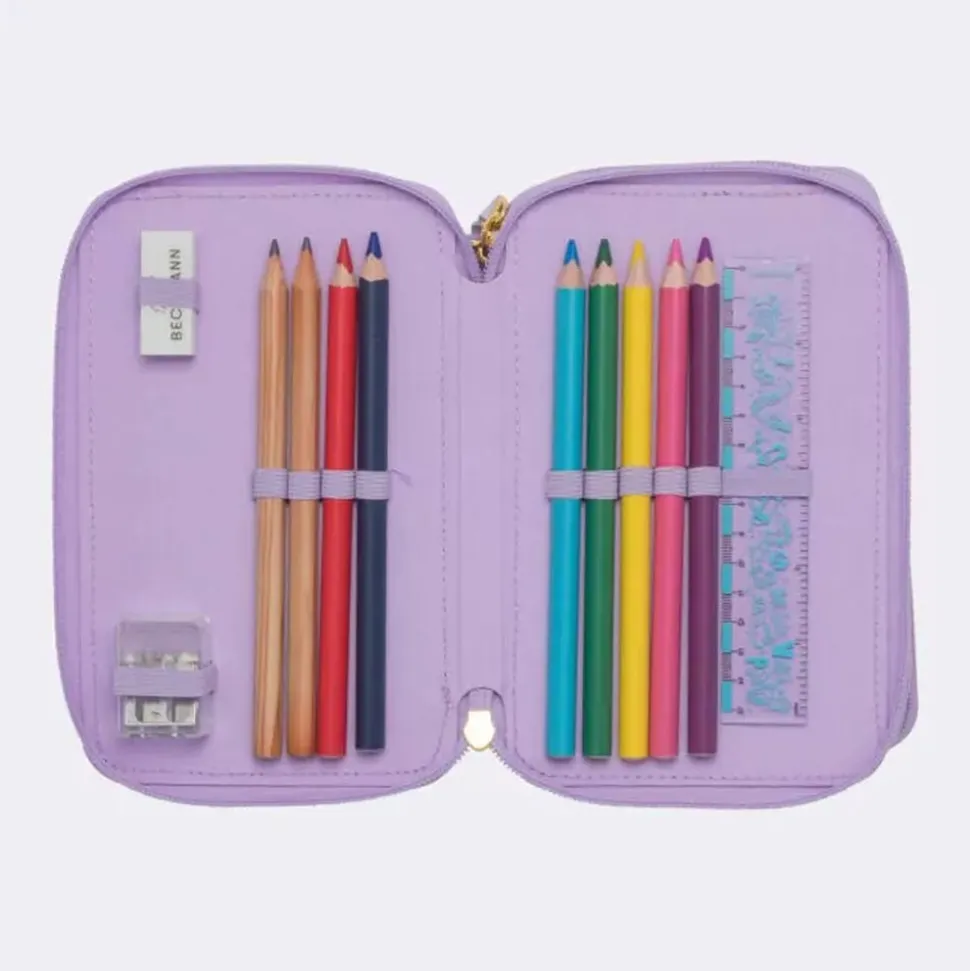 Penalhuset er fuldt af overraskelser og indeholder selvfølgelig alt, du har brug for til skolen og lektierne. Blyanter og farveblyanter er lavet af træ.