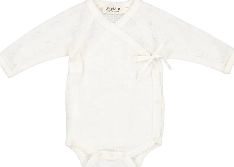 Body til nyfødte med slå-om-lukning. Lukkes med trykknapper og bindebånd. Super blød kvalitet og god pasform. Oeko-Tex certificeret.