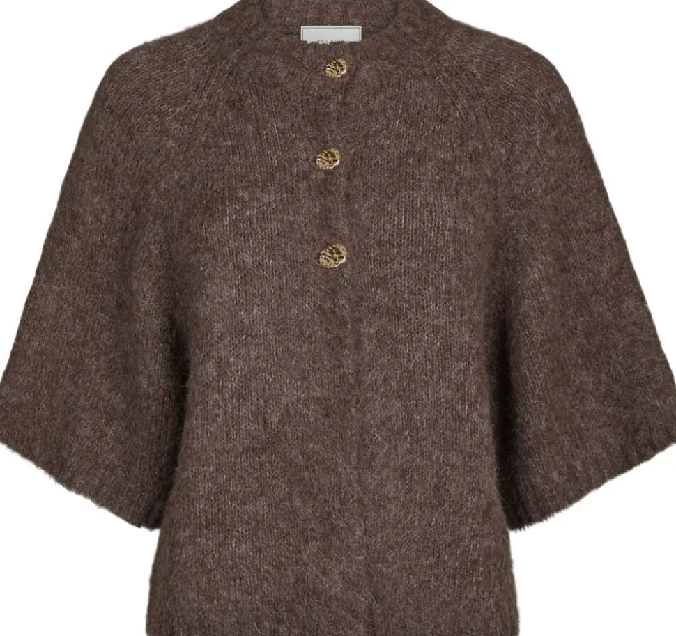 Boxy strik cardigan med vidde på ærmerne og smukke knapper foran. Kvaliteten er lækker blød og har et fluffy udtryk. Modellen er 176 cm og er iført størrelse 36.