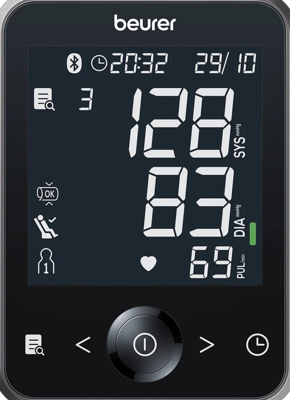 Der kan gemmes op til 120 målinger for 2 brugere på blodtryksmåleren. Alle målinger kan overføres til Beurer appen HealthManager Pro, så du kan holde øje med dit blodtryk via din telefon.