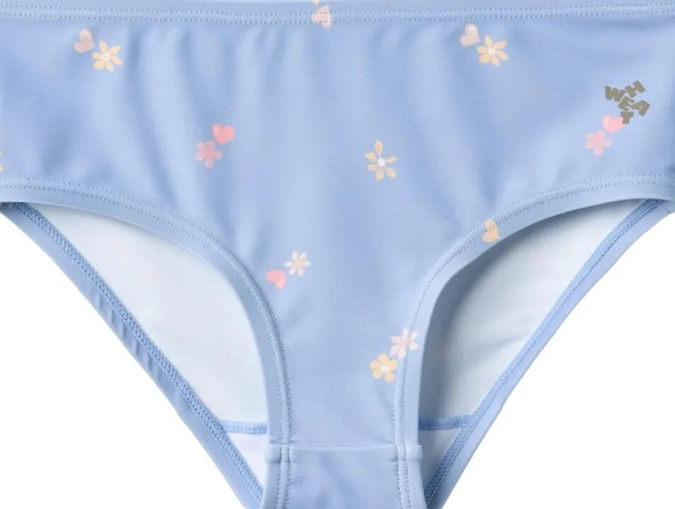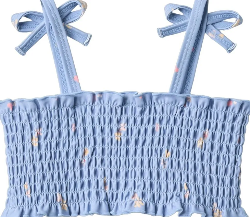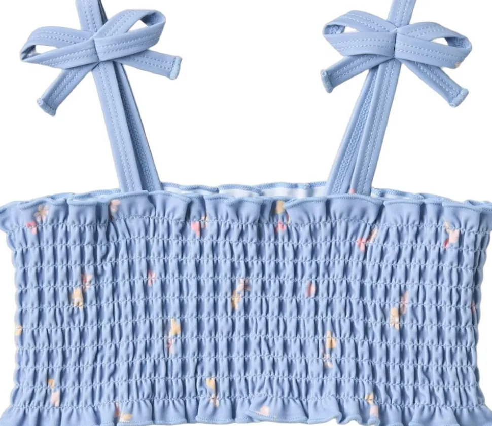 Skøn biniki med smockdetaljer til børn. – Overdel: Smockdetaljer samt tynde stropper med sløjfer – Underdel: Elastik i taljen – Håndtegnet signaturprint Denne bikini er perfekt til en varm dag på stranden, ved poolen, i haven eller blot i svømmehallen. Bikinioverdelen har tynde stropper med en fin lille sløjfe på toppen. Underdelen har elastik i taljen for god komfort. Al badetøj er overvejende produceret i genanvendt polyester, og er Standard 100 fra OEKO-TEX® certificeret. Forlæng dit badetøjs levetid: – Ved altid at skylle dit badetøj efter badning i klor- eller saltvand. – Ved at følge vaskeanvisningerne — – Standard 100 fra OEKO-TEX® – 83% Genanvendt polyester, 17% ElastanSøt bikini med print og smockdetaljer for barn. – Smockdetaljer – Wheat-signaturprint – Smale skulderstropper med små sløyfer Wheats bikini passer perfekt til en dag på stranden eller i svømmehallen. All badetøyet vårt er hovedsakelig laget av resirkulert polyester, og er behagelig for barnet å ha på og bevege seg i. Slik tar du vare på badetøyet ditt: – Skyll alltid badetøyet etter bruk i klor- eller saltvann – Følg vaskeanvisningen — – Standard 100 by OEKO-TEX® – 83% Resirkulert polyester, 17% Elastan