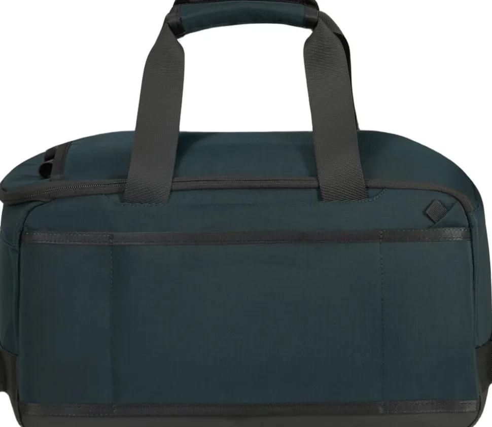 Rejsetaske med rygsække stropper, passer som kabinetaske til Ryan air med sine mål på 40x25x20 cm. lavet af genbrugsplast, frontlomme med lynlås, rumindhold 23 l, vægt 0,9 kg, 2 års garanti.