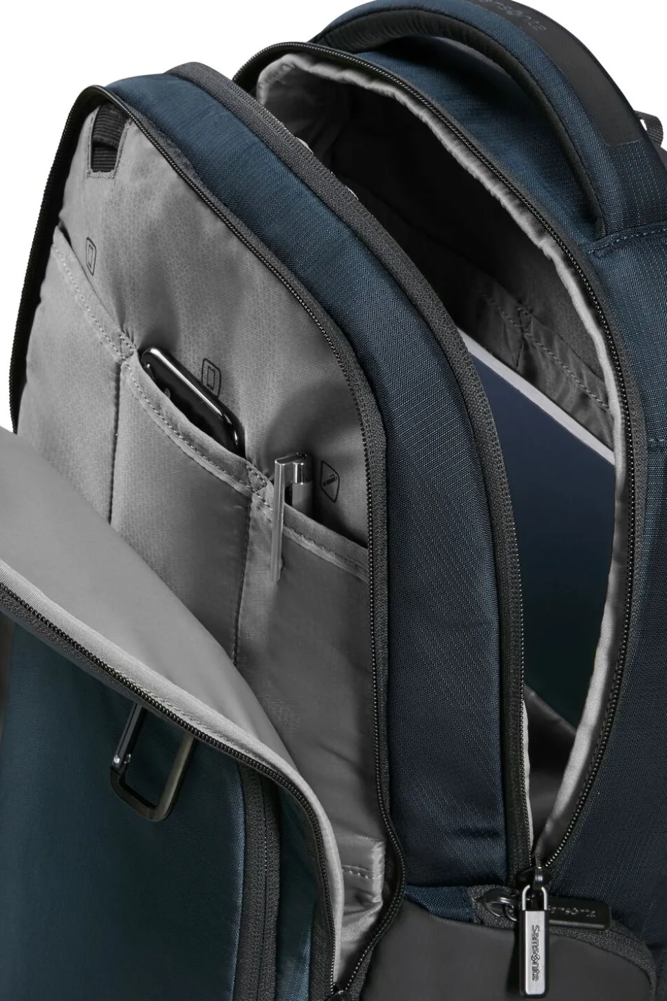 Computer rygsæk med plads til 14,1″ PC og 10,5″ tablet, både det indvendige og udvendige stof er lavet af genbrugsplast, flaskeholder i siden, frontlomme med lynlås, brystrem, ergonomiske stropper, rumindhold 20,5 l, vægt 1 kg. 2 års garanti.