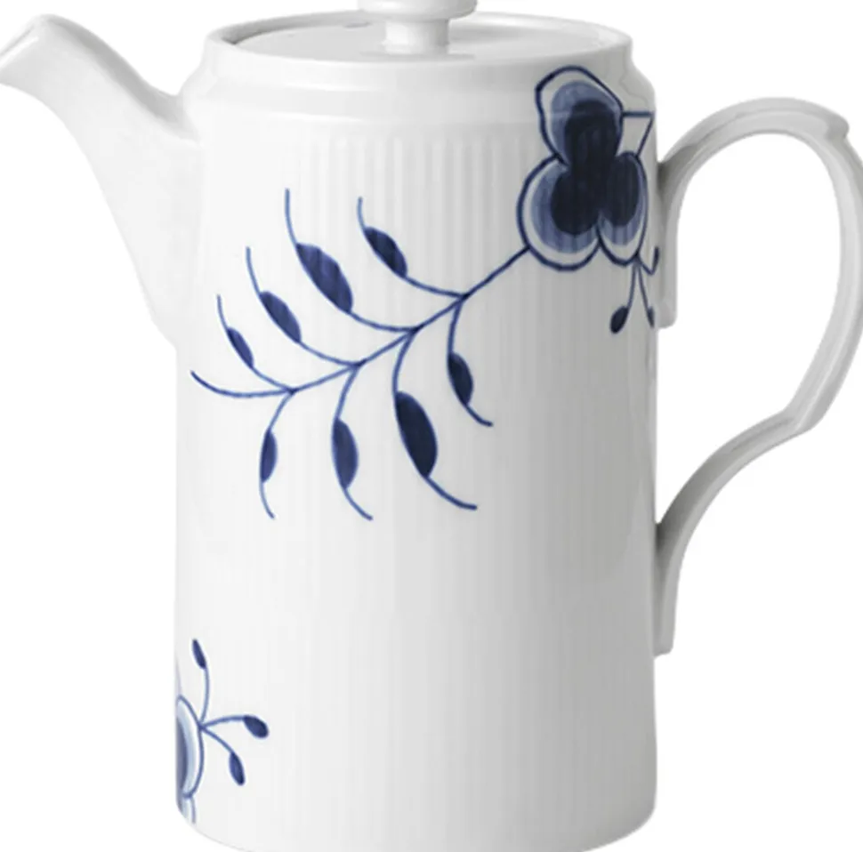 Den nye kande med låg er oplagt til varme drikke og er en smuk tilføjelse til enhver Blå Mega Riflet samling eller som et strejf af klassisk modernitet til en samling af Musselmalet Riflet.