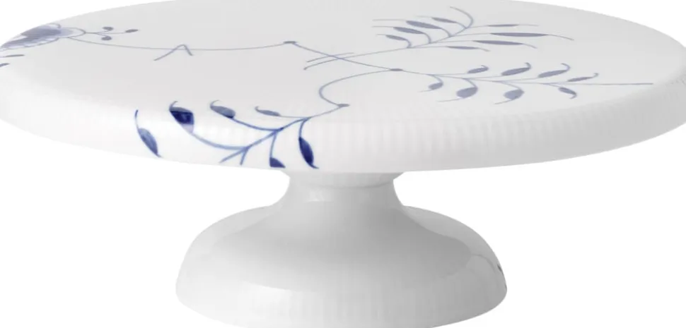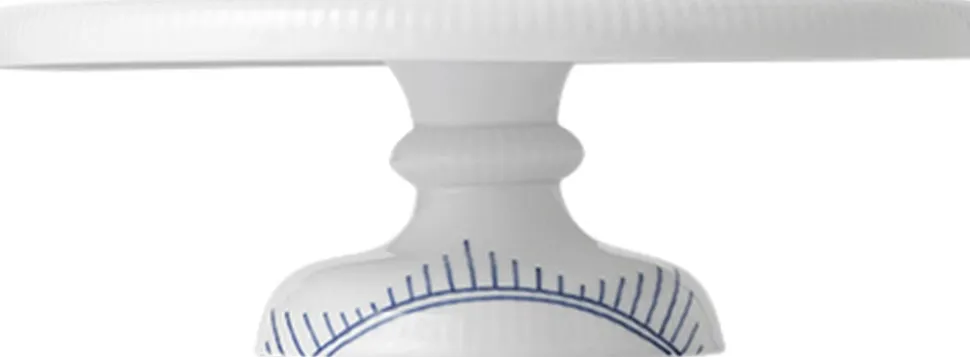 Med inspiration fra Royal Copenhagens klassiske designsprog er det nye fad på fod udsmykket med det evigt klassiske Blå Mega Riflet-mønster.