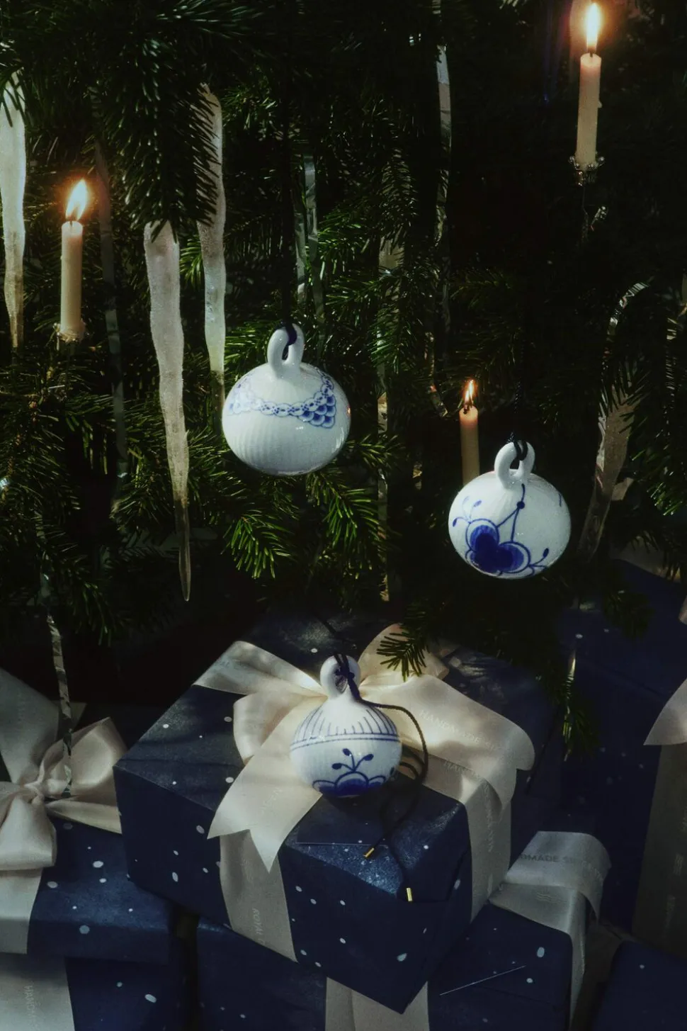 Blå Mega Riflet Julekugler er et perfekt samlerobjekt. Kuglerne vil se smukke ud på træet blandet med hvide, blå eller gyldne ornamenter. Eller måske hænge i vinduerne i skæret af levende lys. Kuglerne har to versioner af Blå Mega Riflet mønster designet af Karen Kjælgård-Larsen.