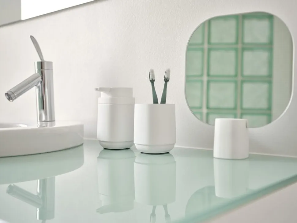 Bordspejlet i hærdet glas med betonfod har et organisk og enkelt udtryk. Det stjæler ikke rummet, men glider naturligt ind i indretningen på både badeværelse, soveværelse og entrehylde. Beton er et populært materiale, da det passer godt sammen med naturmaterialer som træ, keramik og sten. Desuden har beton den fordel, at det bliver brændt ved lavere temperatur end keramik, så man sparer en smule på energien under produktionen. Designteamet Mavro//Lefèvre står bag denne stilsikre udvidelse af Time-universet.