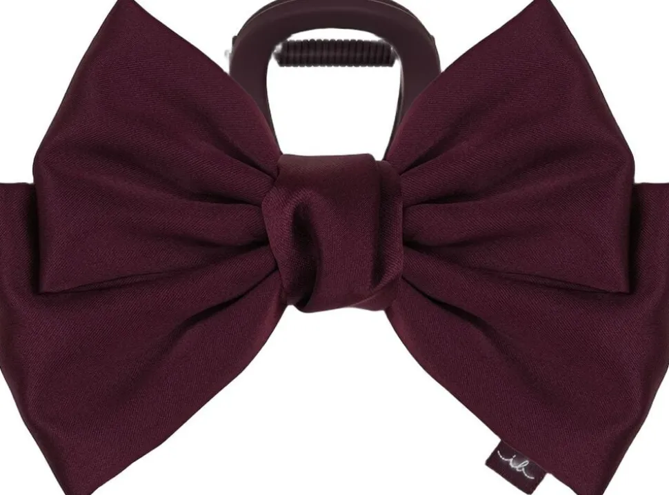 Tilføj et strejf af elegance til dine frisurer med denne clips med et bordeauxrødt satinbånd. Ideel til at fremhæve en halvt opbundet frisure eller holde en knold med stil.