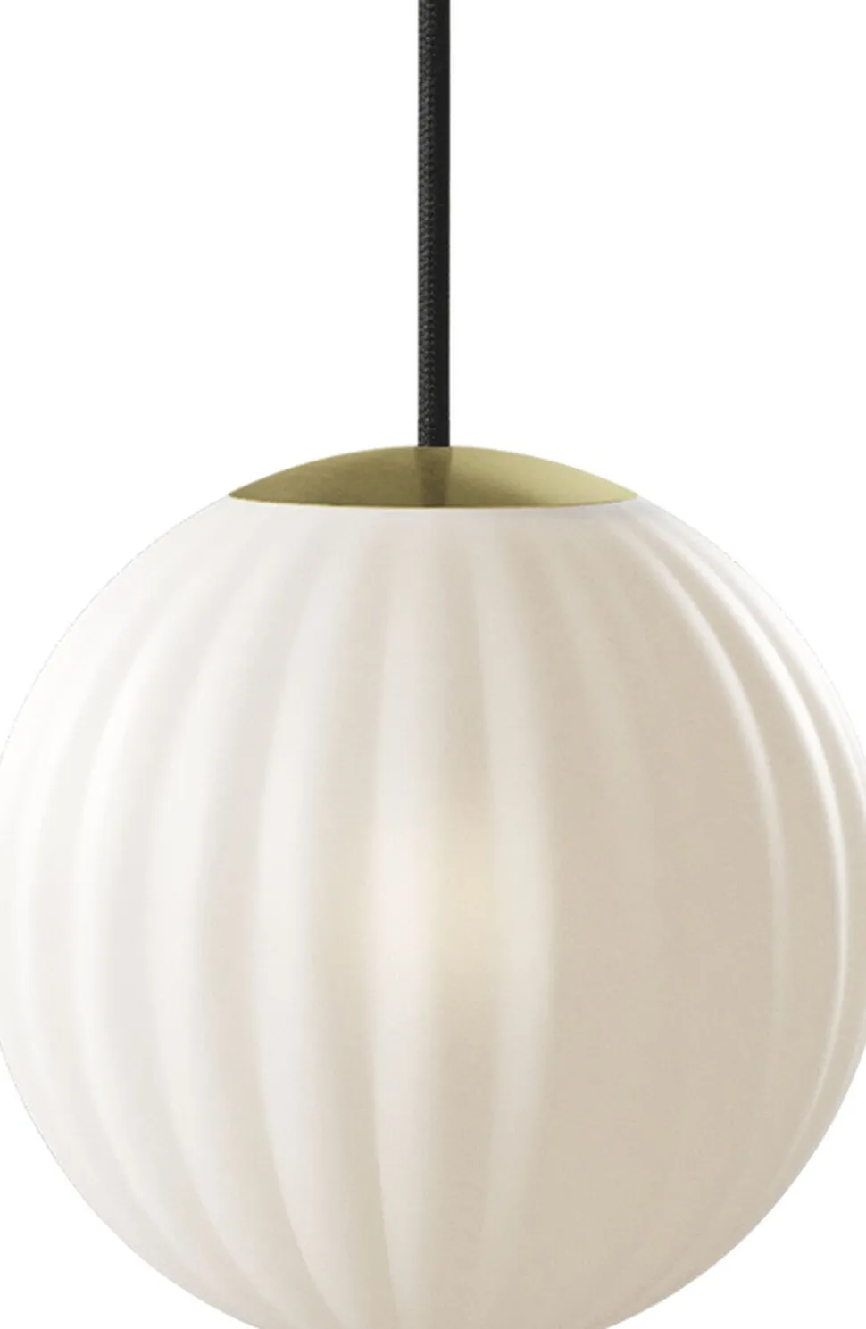Nordic Tales’ Bright Modeco Pendler lamper omfavner begrebet “Artdeco” på en klassisk og elegant måde. Det rene minimalistiske look kombineret med elegante bløde riller og messing detaljer giver et skønt udtryk. Det hvide opal glas giver et blødt diffust lys, der oplyser rummet i en helhed og giver en hyggelig atmosfære.