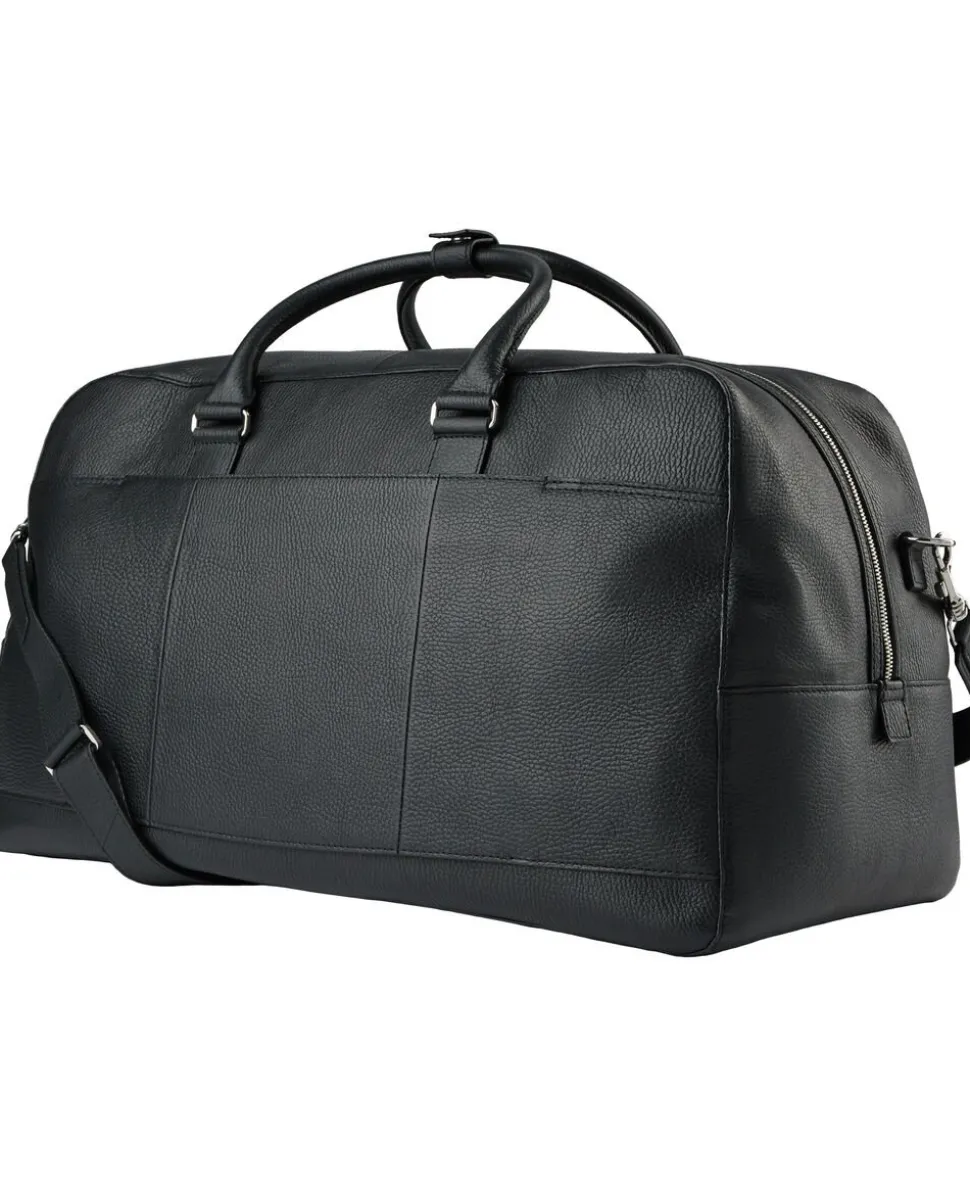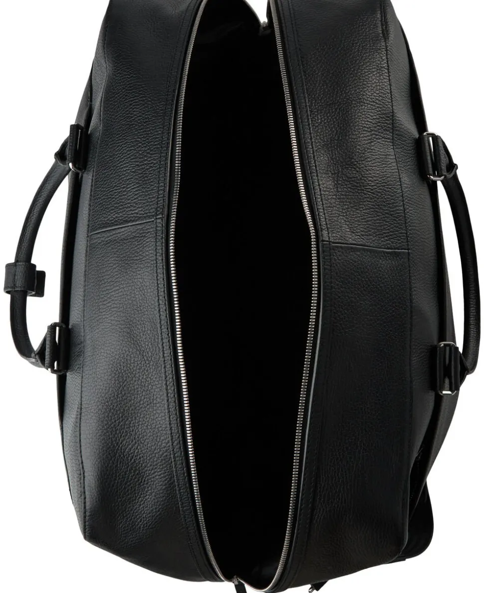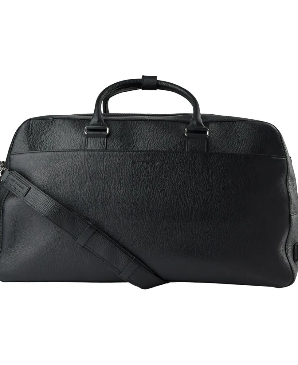 Weekend bag in soft grainy leather. Detachable shoulder strap, side handle and two-way zip at top. Zipped outside front pocket, trolley attachment strap at the back. Inside features one large zipped pocket and one open welt pocket. Embossed Tiger of Sweden logo at front. Size: 31.5 cm x 53 x 27 cm