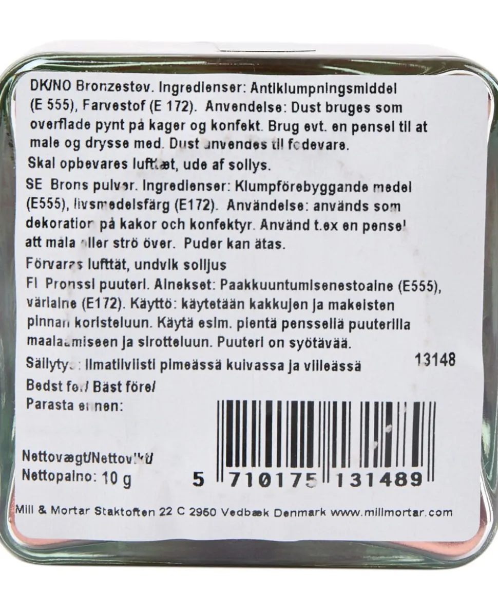 Nu kan du lave professionelt udseende kager med bronzestøv. Helt i tidens trend. Støvet påføres med en blød pensel – som om det var blush. Eller kan blandes op med alkohol og pensles på som en mere vandfast løsning.