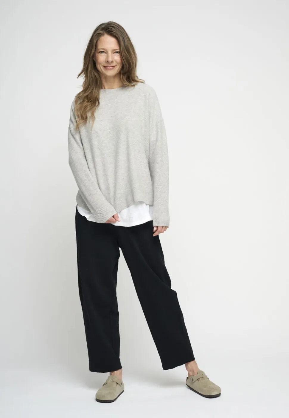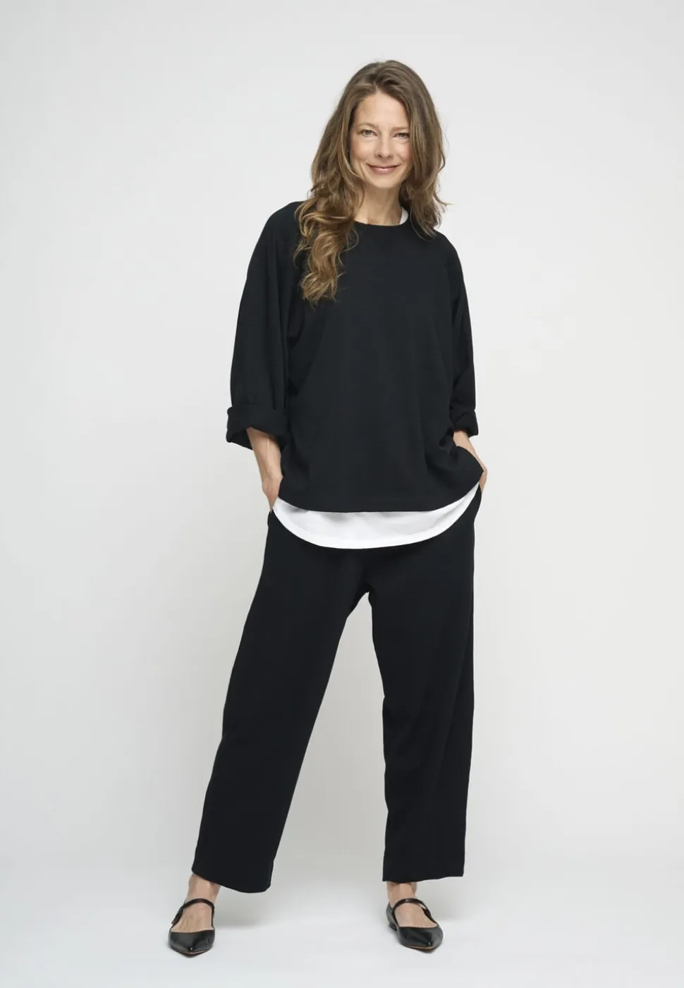 Sorte barrel-sweatpants i afslappet pasform med en diskret mønstret væ