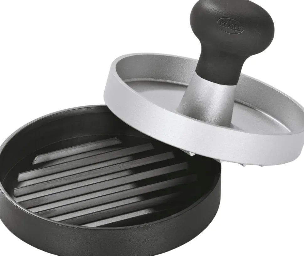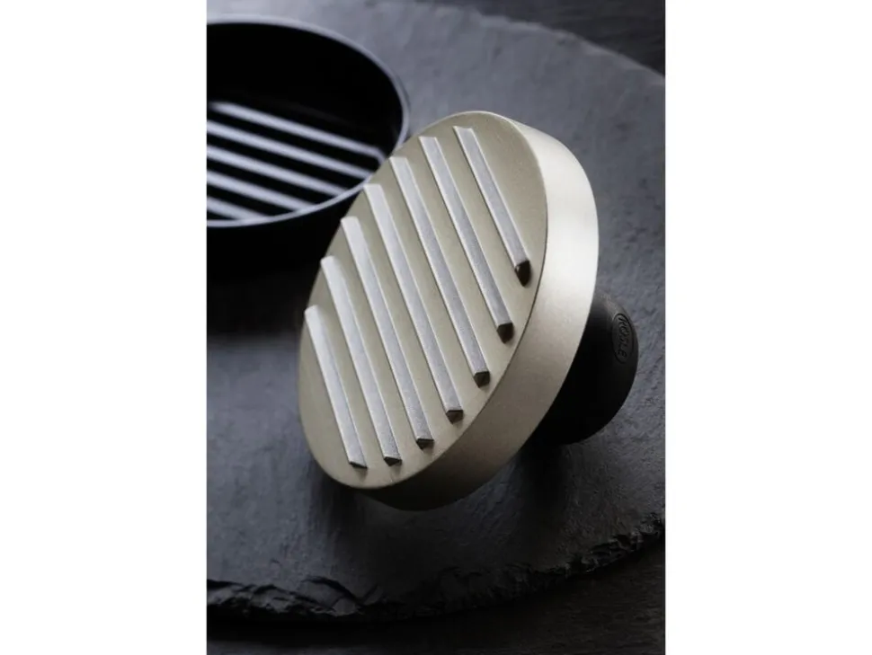 Til hurtig og let formning af burgerbøffer. Dia. 11,5 cm. Stampe med non-stick belægning. Ikke et grilltilbehør, så ikke egnet til brug på en grill. Velegnet til standard og XL burgerboller.