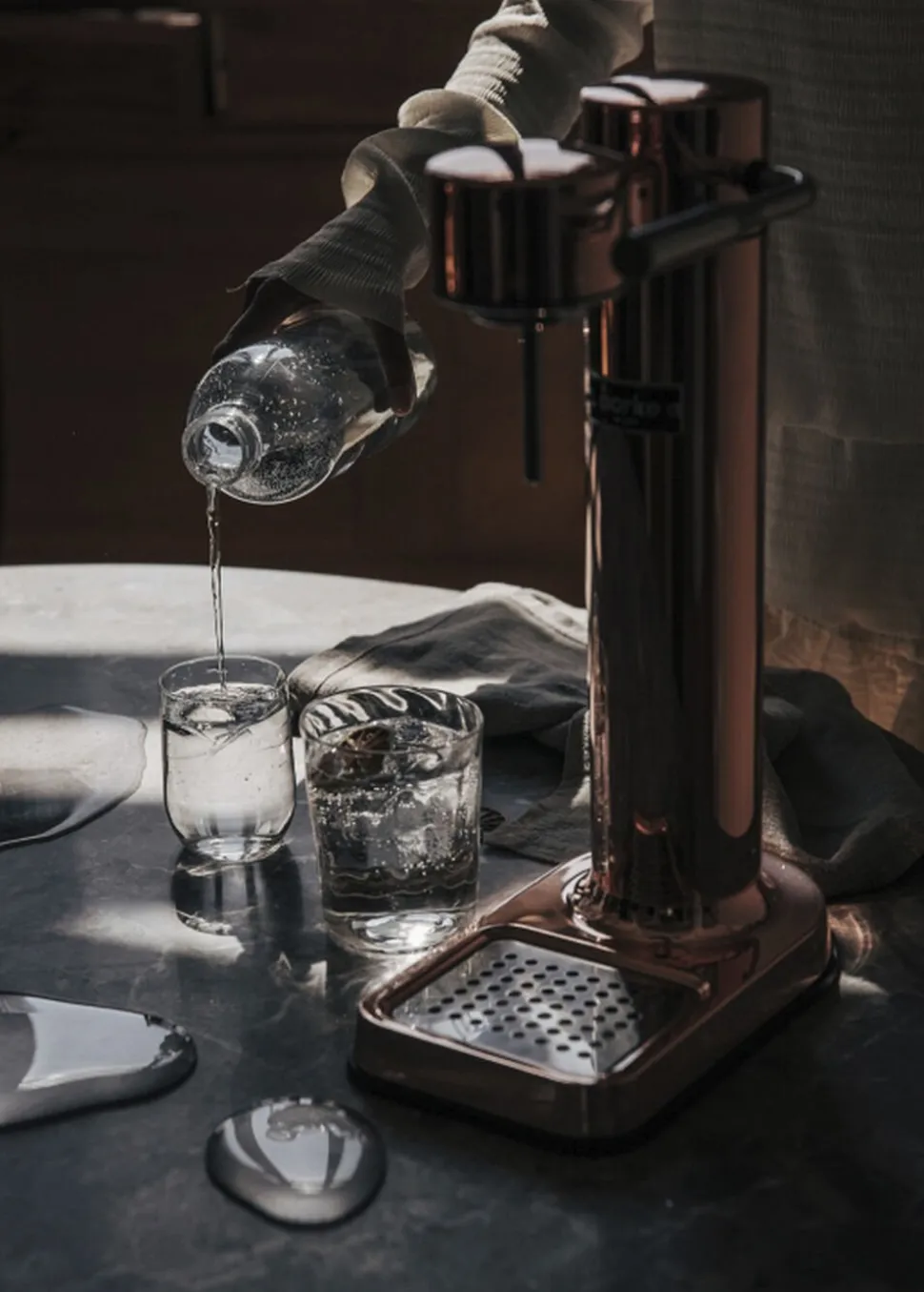 CARBONATOR 3 COPPER er designet med brugervenlighed i tankerne. Det gør det nemt at lave kulsyreholdige drikke ved blot at tilføje genanvendelige kulsyrepatroner og trykke på en knap.