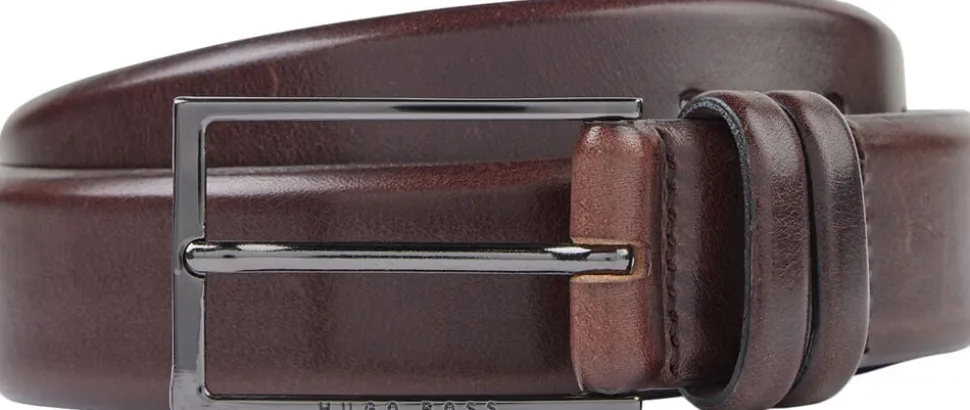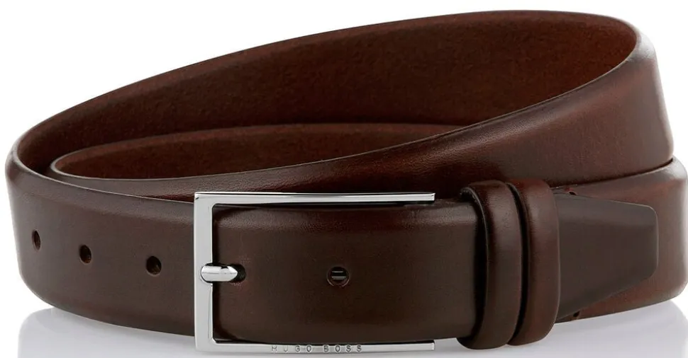 Enkelt og klassisk bælte fra BOSS i det fineste læder med et helt enkelt firkantet spænde i børstet stål. Perfekt tilbehør til den klassiske ‘Work Wear’-garderobe. Bredde: 3,5 cm